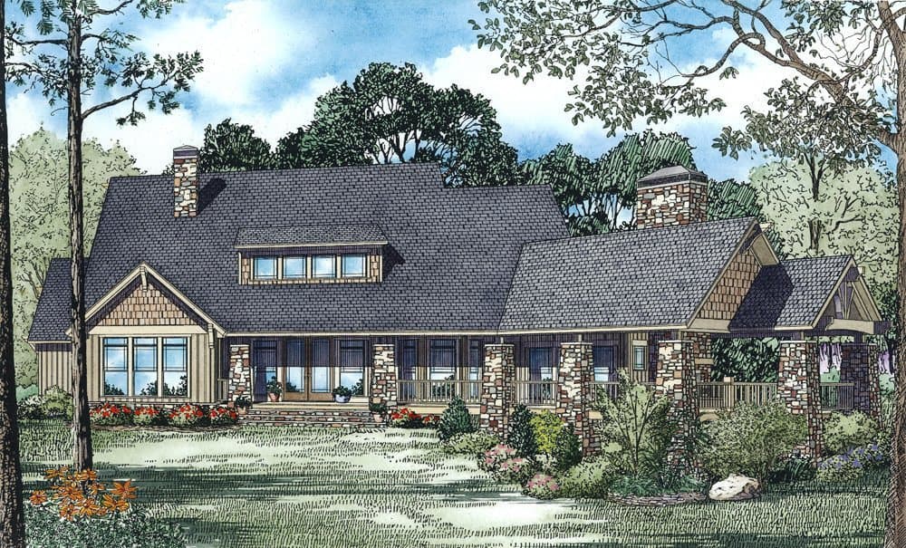 This ravishing Country style home with Craftsman influences (House Plan #153-1123) has 3345 square feet of living space. The 2 story floor plan includes 4 bedrooms.