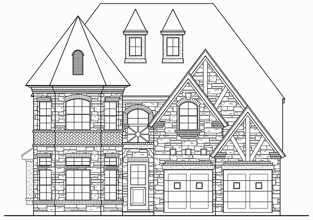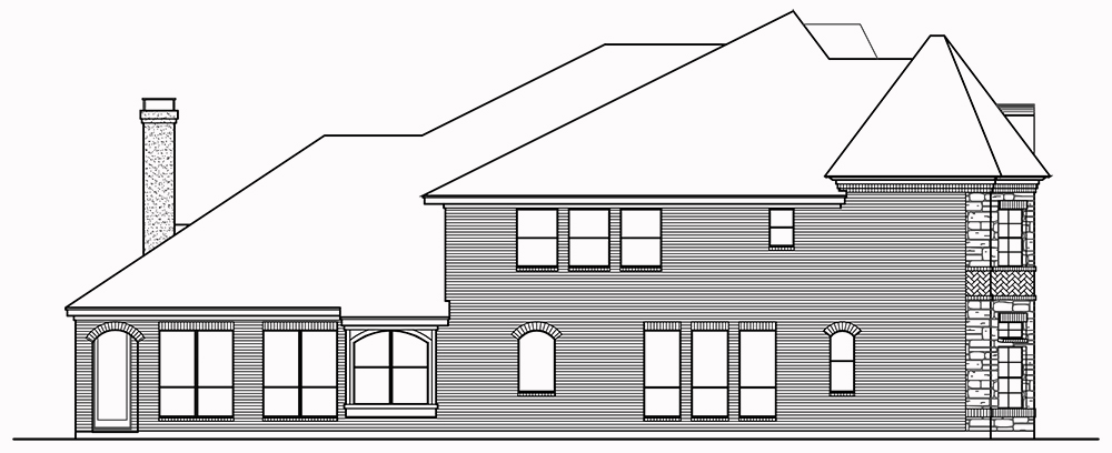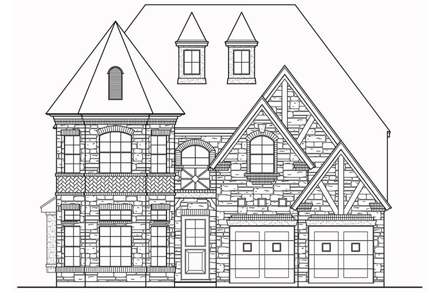 This lovely Tudor style home plan with Georgian influences (House Plan #195-1060) has 3407 square feet of living space. The 2 story floor plan includes 3 bedrooms, 3 full bathrooms, and 1 half bath.