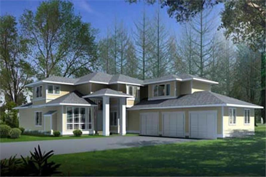 The Praire house plan 100-418 has an unfinished/future space, oversized garage, upstairs master bdrm, suited for view lot, kitchen island unfinished basement, walk-in closet, daylight basement, suited for sloping lot, peninsula/eating bar, volume/vaulted ceiling, side-entry garage, nook / breakfast area, suited for narrow lot, bonus room, den/office/computer, and an open floor plan.