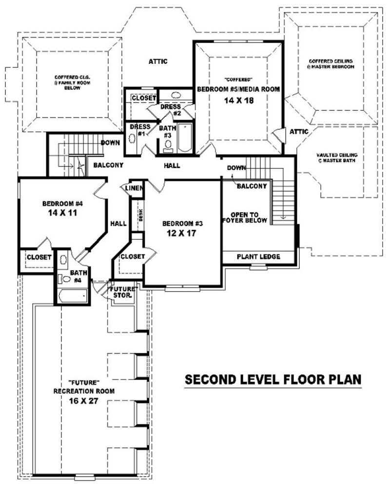This alluring French style house design with luxury design influences has 3460 square feet of living space. The two story floor plan includes 3 bedrooms.