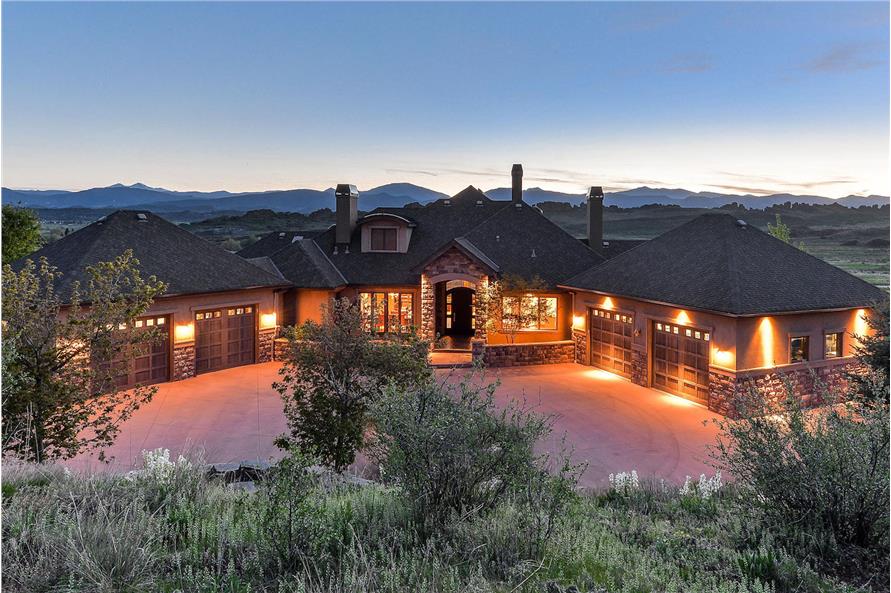This amazing Ranch style home with Rustic Country design detailing (Plan #161-1091) has 3469 square feet of living space, with an additional 2519 square feet of living space and 950 square feet of storage space (unfinished) if you choose to finished the basement. The 1-story floor plan includes 2–4 bedrooms and 2.5–4.5 bathrooms, depending on if you finish the basement, plus