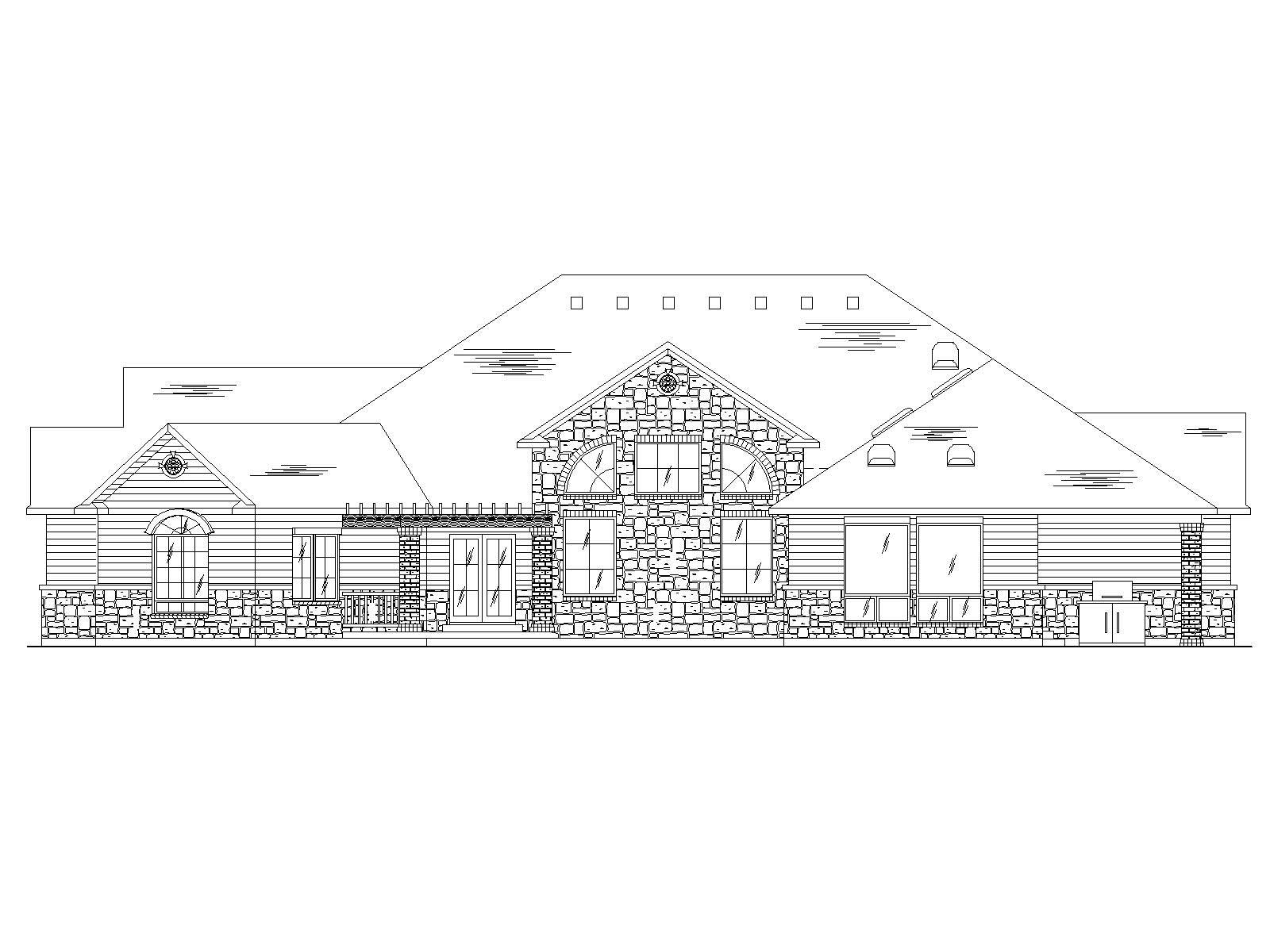 This exquisite European style home plan with Luxury influences (House Plan #135-1002) has 3471 square feet of living space. The 1 story floor plan includes 5 bedrooms, 5 full bathrooms, and 1 half bath.