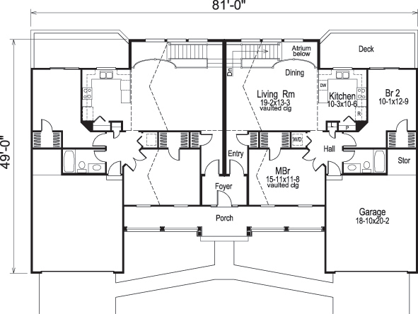 This lovely Multi-Unit style home with Ranch influences (Multi-Family House Plan #138-1105) has 1742 square feet of living space per unit. The 1 story floor plan includes 3 bedrooms per unit.