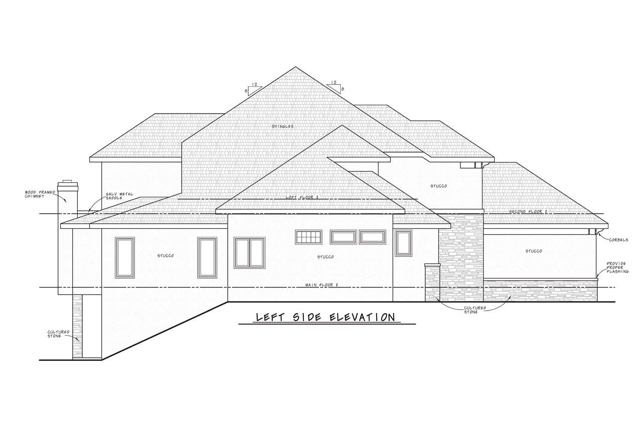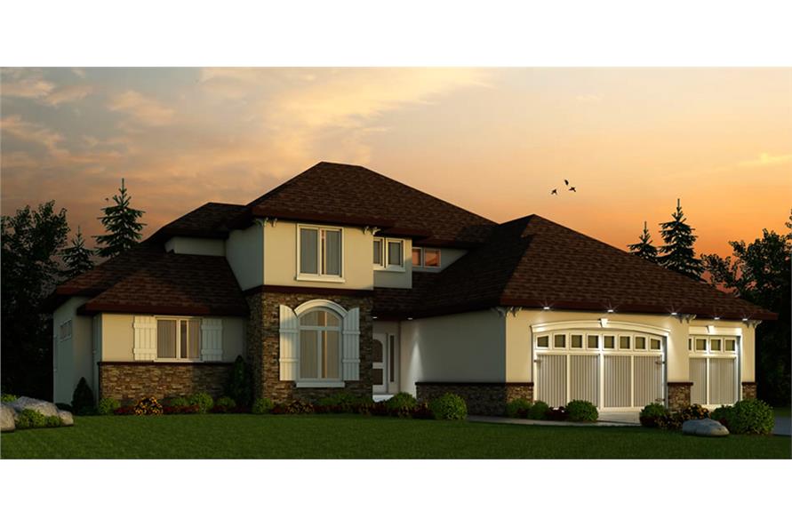 This lovely Tuscan style home with Contemporary influences (House Plan #120-2456) has 3553 square feet of living space. The 1.5 story floor plan includes 4 bedrooms.