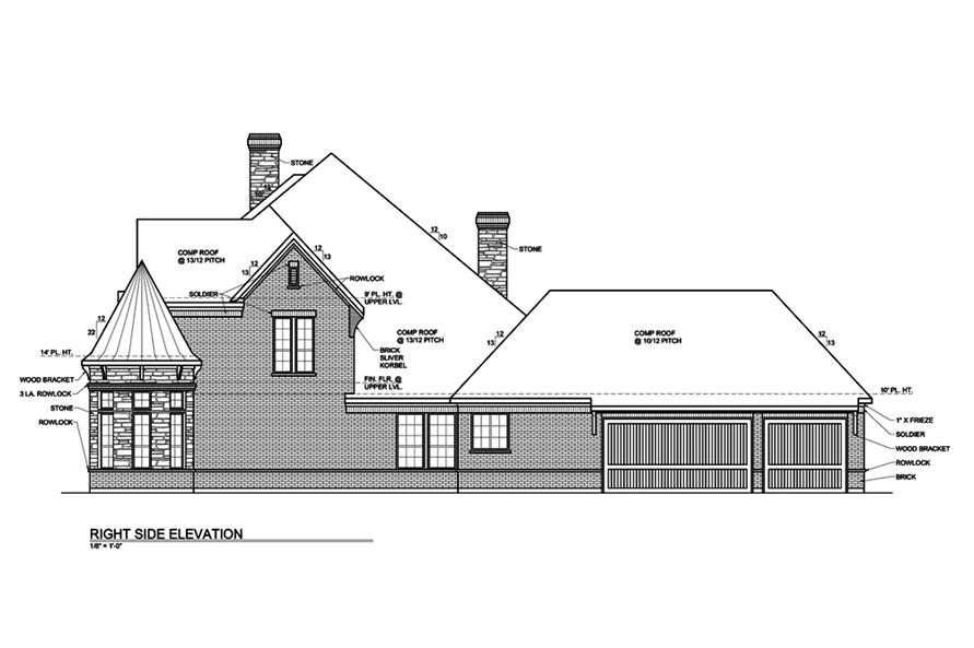 This lovely Traditional style home plan with Tudor influences (House Plan #199-1018) has 3578 square feet of living space. The 2 story floor plan includes 4 bedrooms.