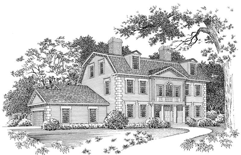 This stately Colonial style home design has 3,583 square feet of living space. The two-story floor plan includes 4 bedrooms and 3.5 bathrooms.