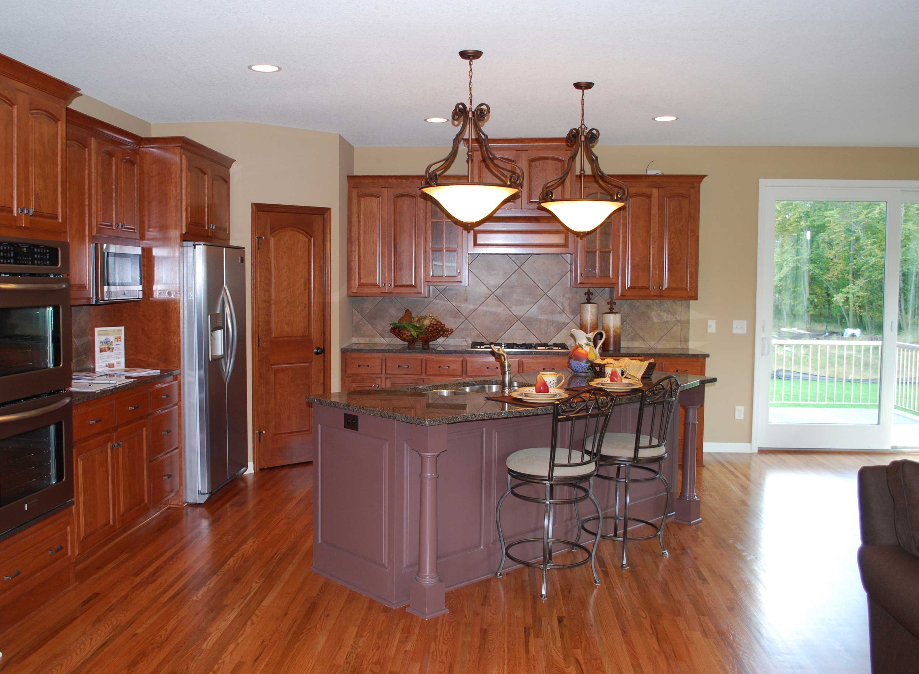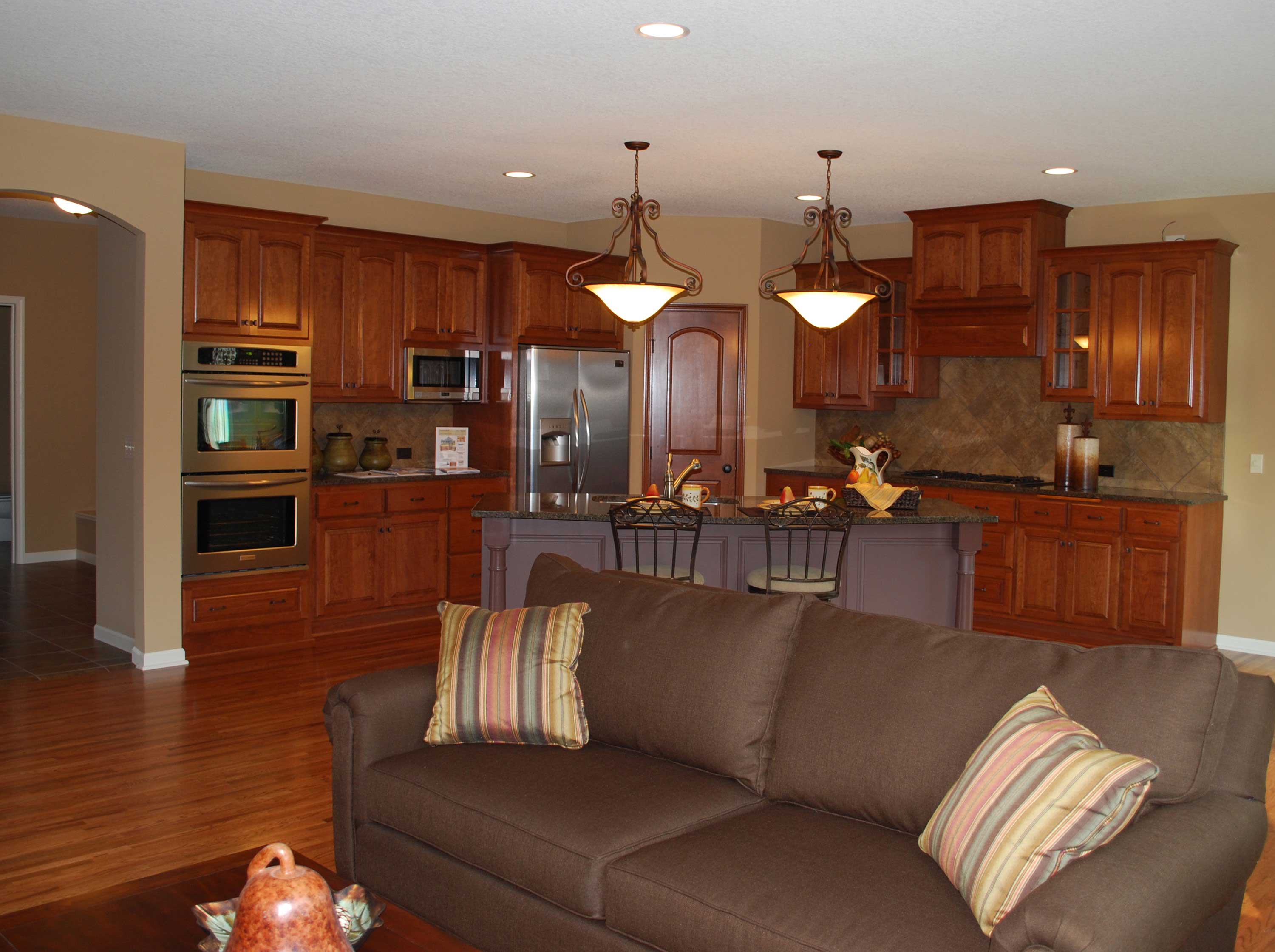 Shingle siding, brick, columns and shutters embellish the facade of this lovely two-story. Inside, the home is perfect for entertaining, with its hearth room and Great Room flanking a see-through fireplace. Guests may hang out at the kitchens island during meal preparation. The dinette is great for casual snacks, while the dining room hosts feasts with flair. Four bedrooms lie upstairs, along with a handy laundry room.