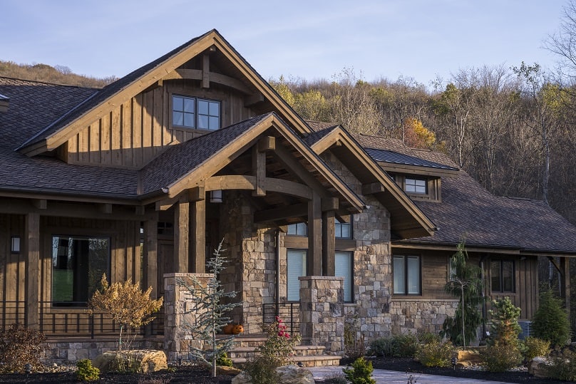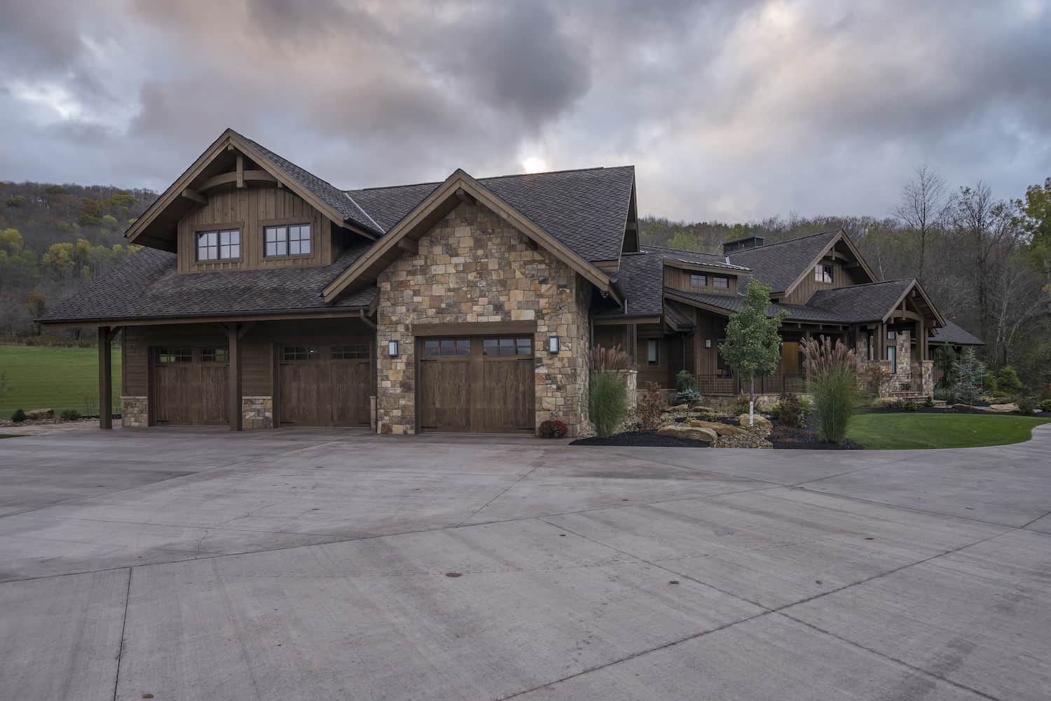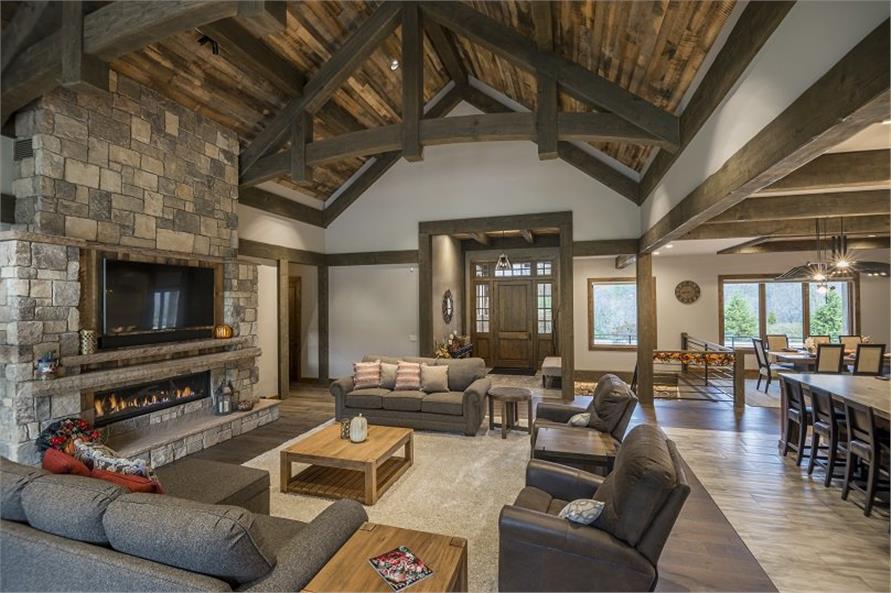 Enter the impressive home by passing through the vaulted front porch with striking timber framing accents in the vaulted entry foyer....