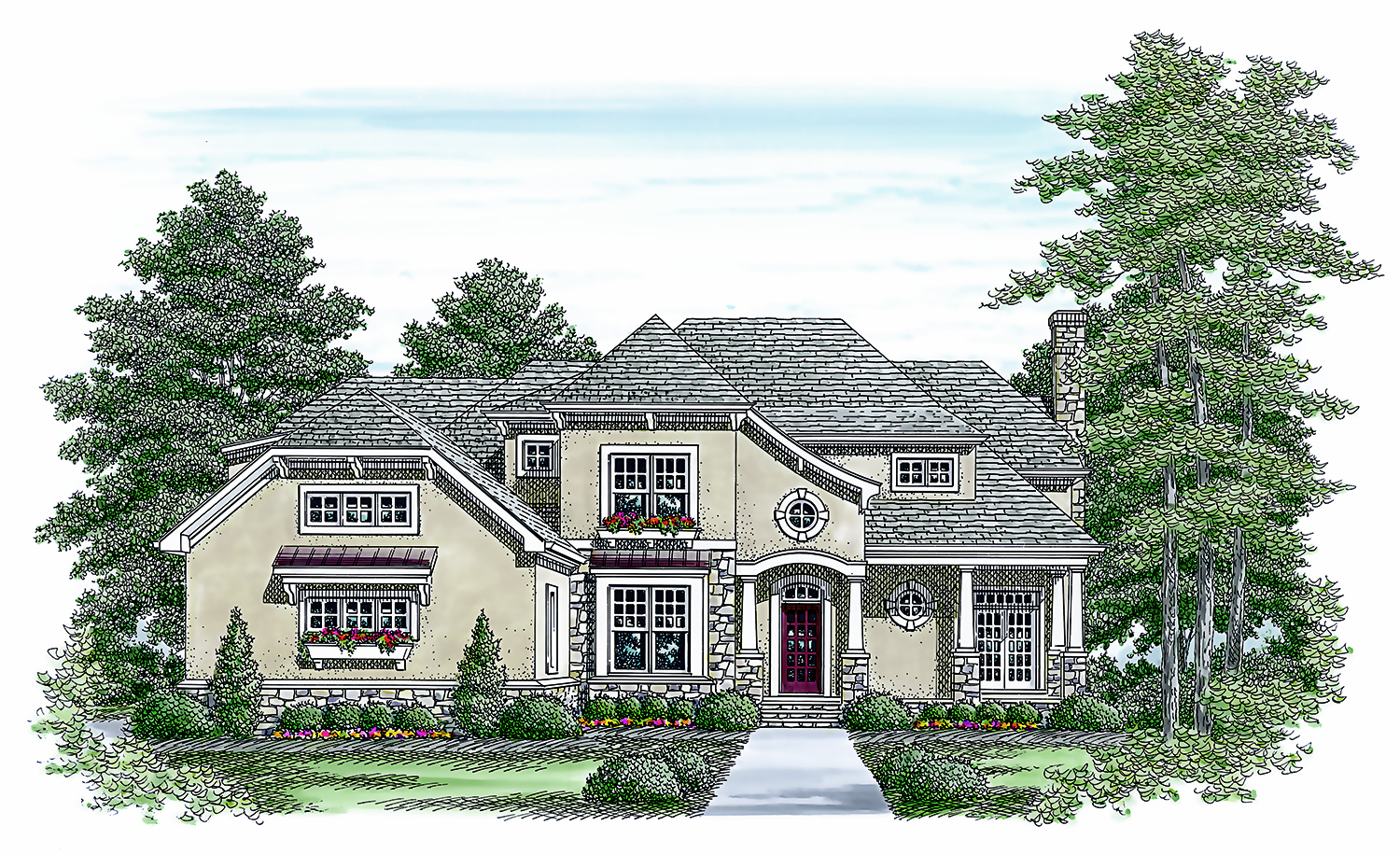 Looking for a spacious and well-designed home plan? This transitional Cottage design with Craftsman details offers 3680 square feet of living space, perfect for a large family or anyone who wants plenty of room to stretch out. The 2-story floor plan includes 4 bedrooms, 3.5 baths, and plenty of open spaces for entertaining. On the first floor, you'll find a great room, kitchen with a large island, breakfast nook, formal dining room, and master suite. Upstairs there's a loft landing space leading to three more bedrooms, three additional baths, a recreation room, and a bonus room -...