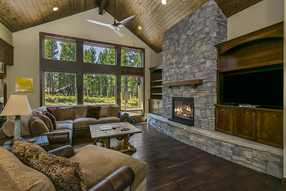With the vibe of a mountain lodge, this remarkable rustic Craftsman home blends in so well with its natural surroundings. The multiple rooflines, stonework detailing, timber supports, and wood siding create an enviable curb appeal. From the vaulted front porch, step into the foyer and the Great Room just beyond. The vaulted ceiling draws your attention to the windows and the view outside to the covered porch. The open-concept kitchen enjoys a large island. The dining nook is also vaulted and boasts windows on three sides. For quiet time, there is also a den. With a split bedroom...