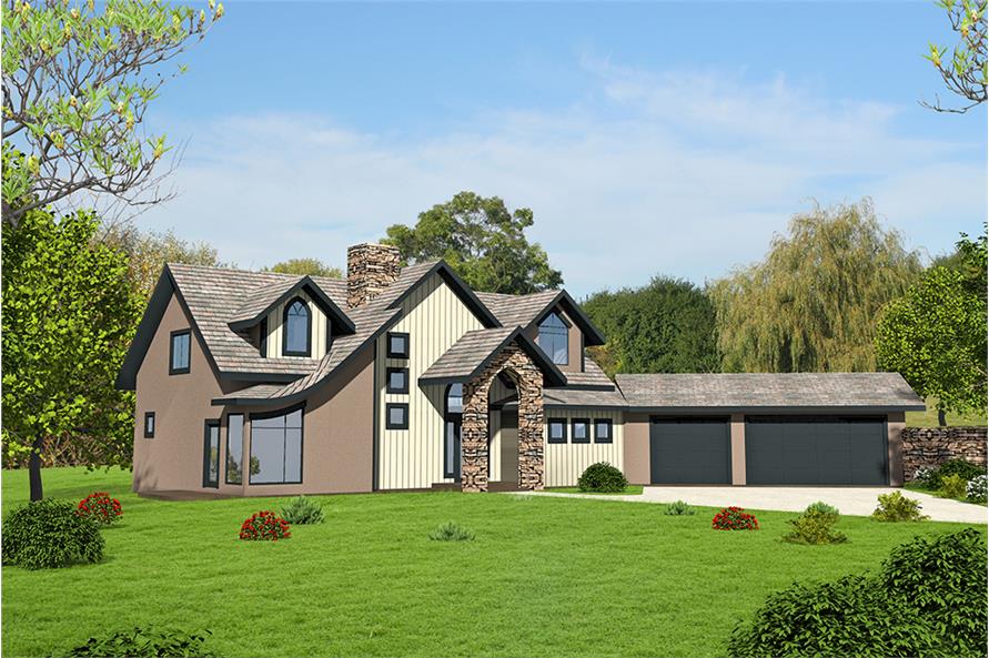 This striking modern home has 3695 square feet of living space. The two-story floor plan includes 4 bedrooms and 4.5 bathrooms. The exterior of this home has an attractive covered front porch. Inside, this house design's floor plan includes a beautiful main floor master.