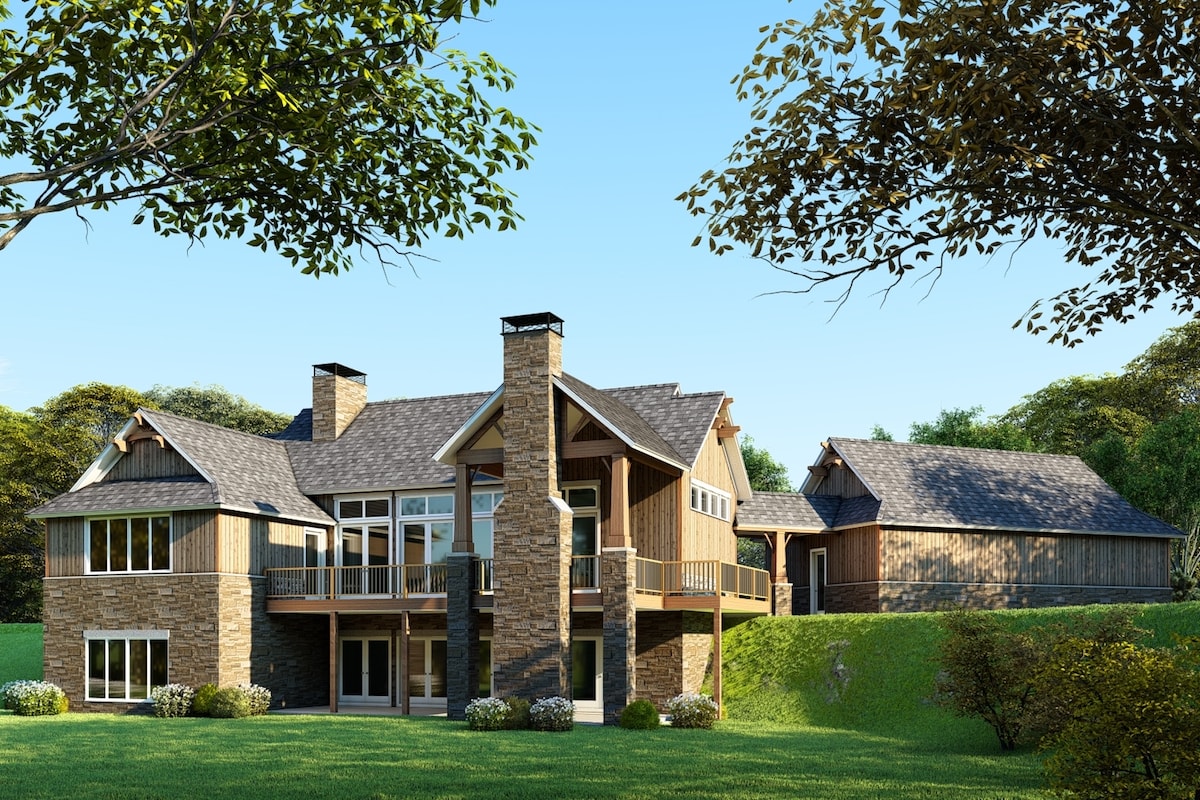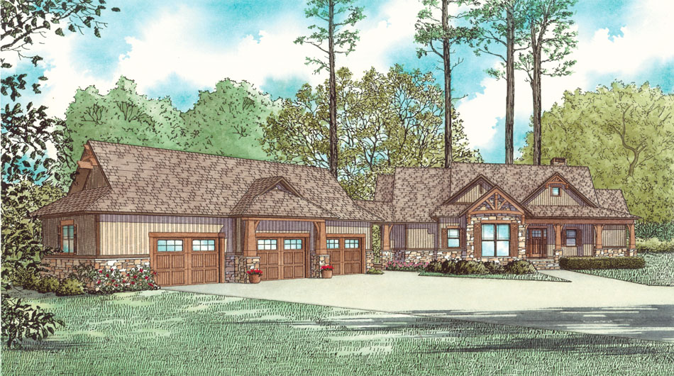 This lovely Country style home plan with Craftsman influences (House Plan #153-2053) has 3734 square feet of living space. The 2 story floor plan includes 4 bedrooms.