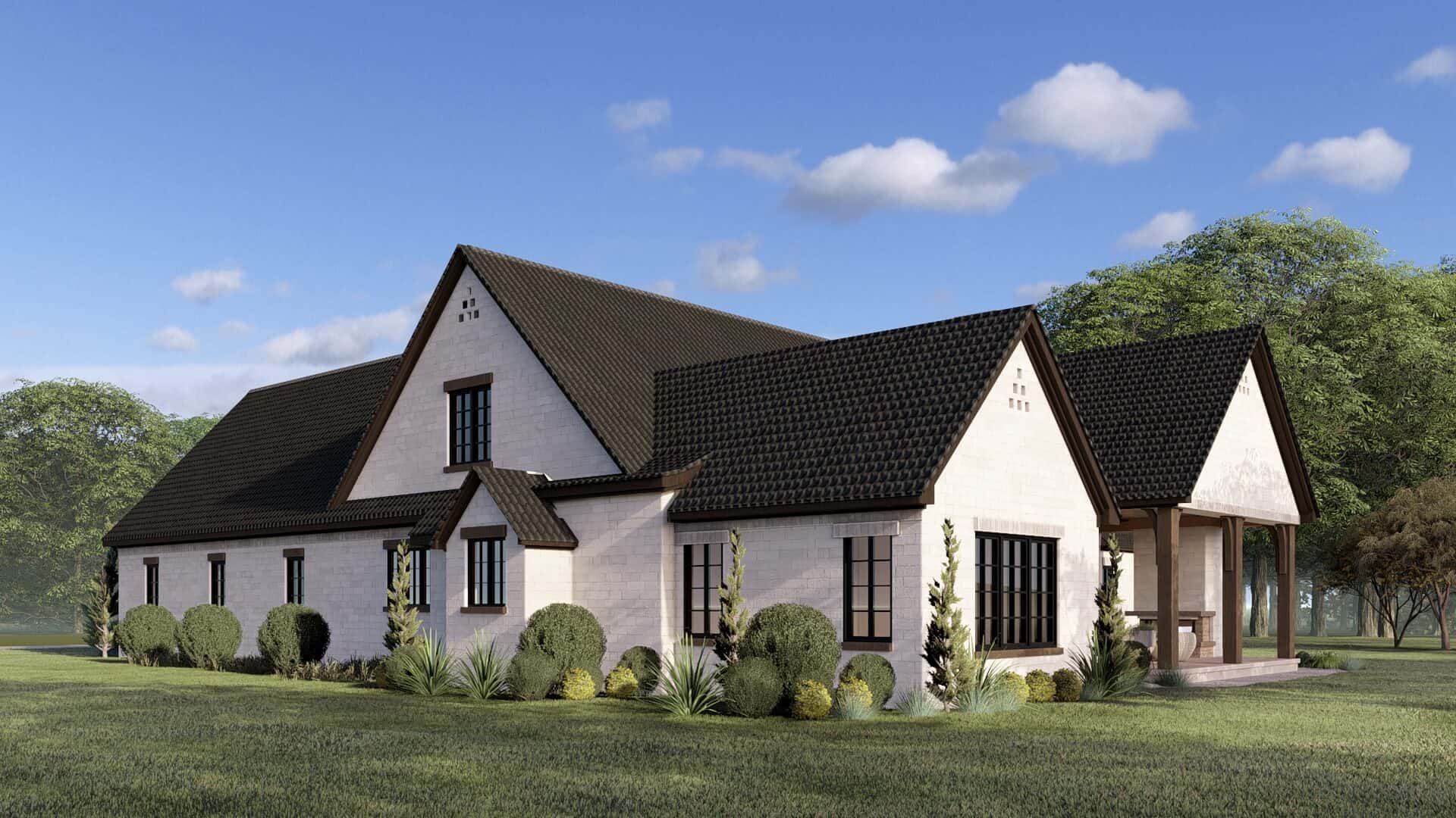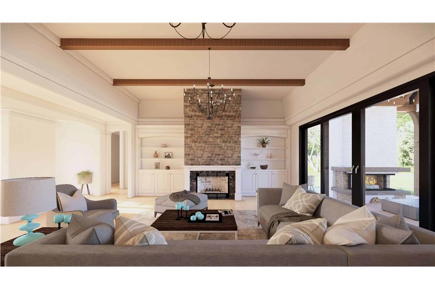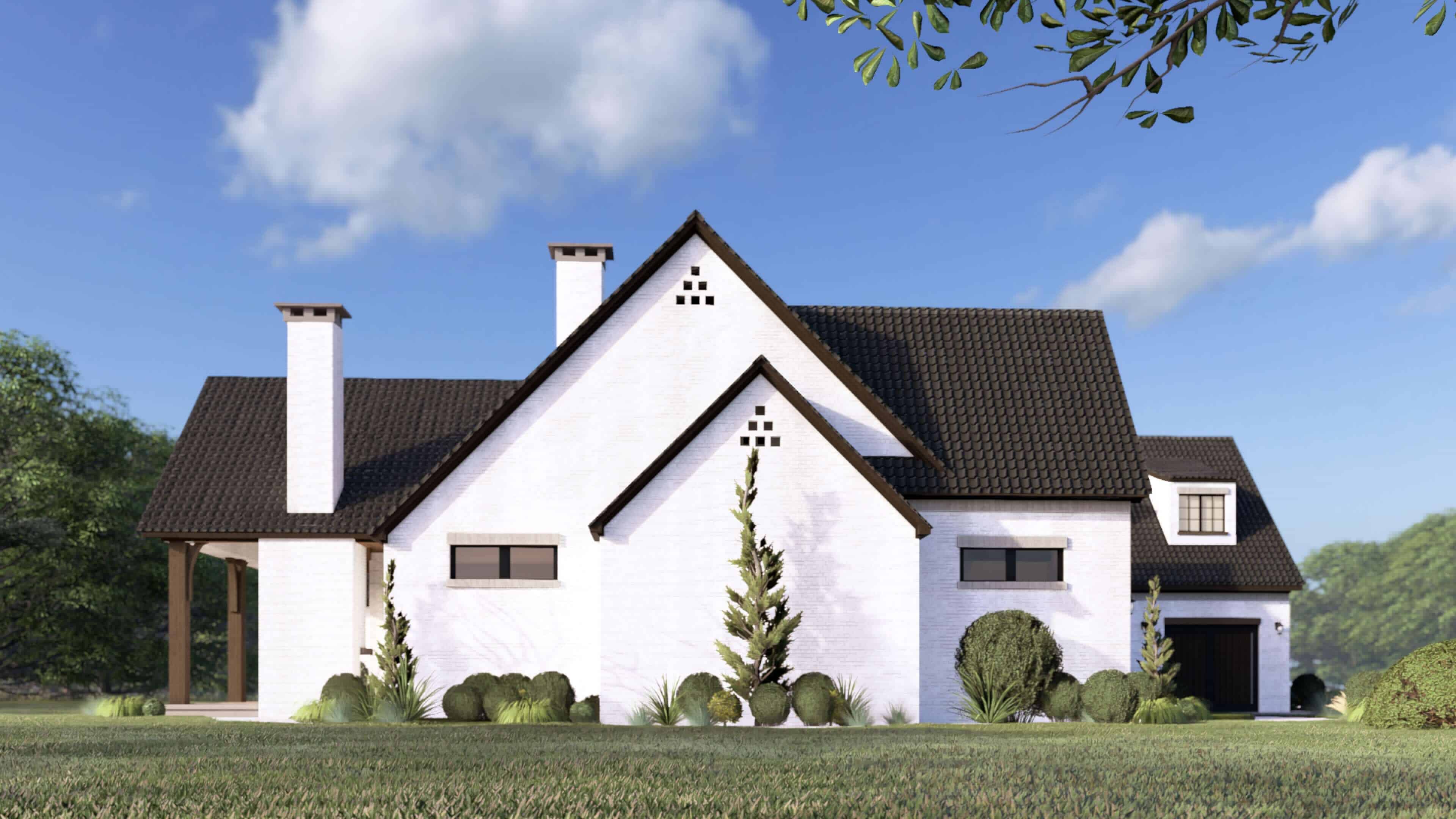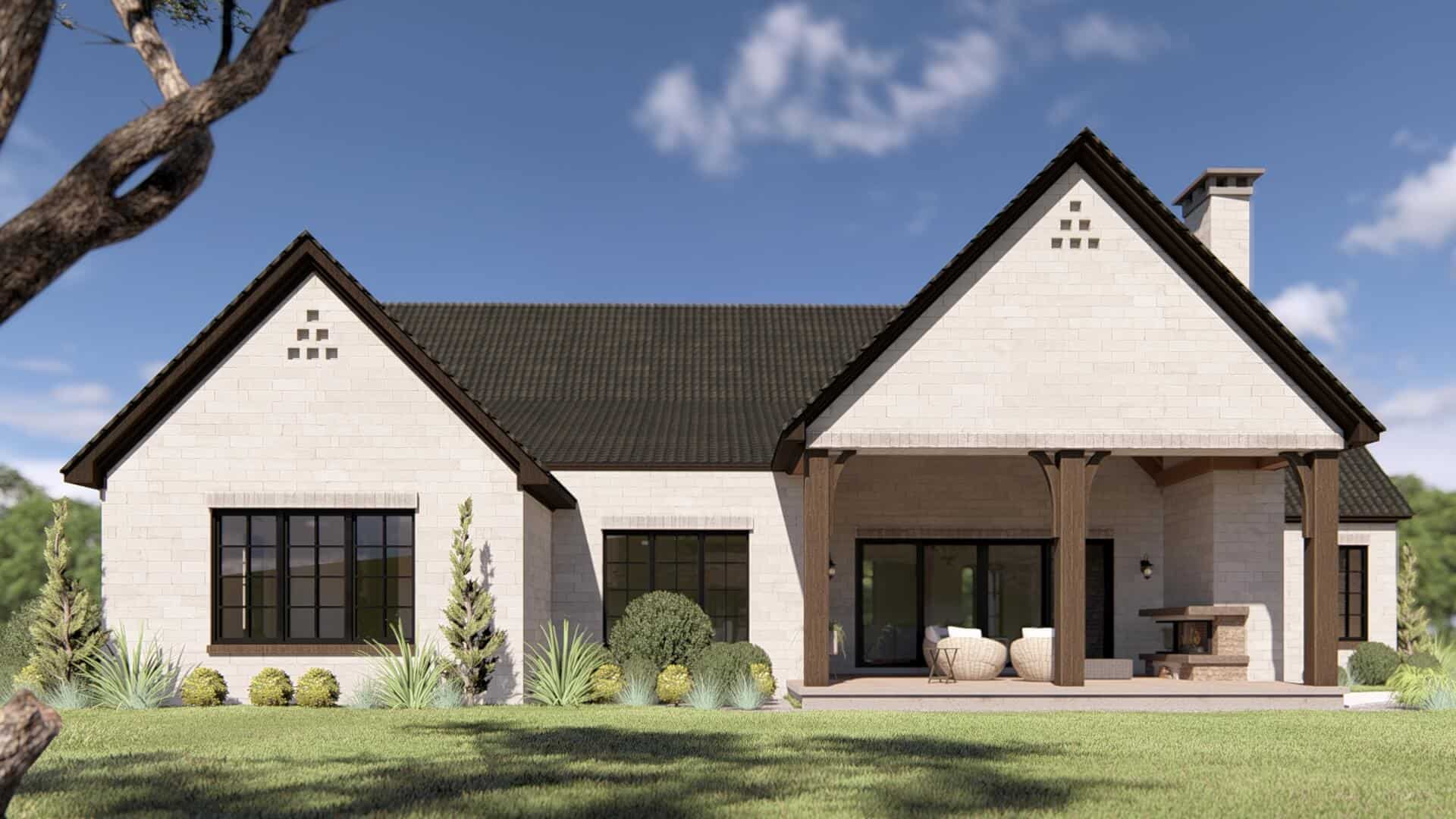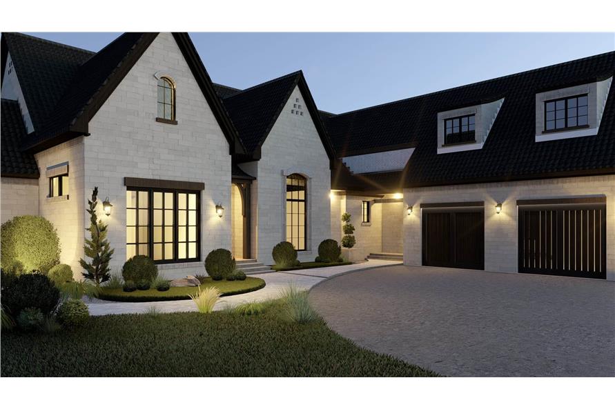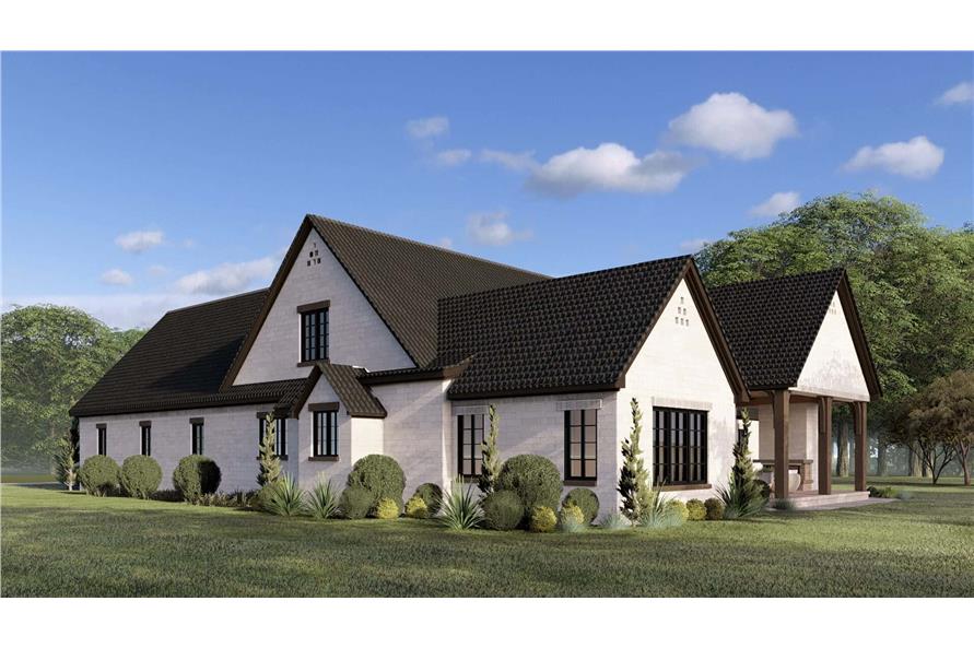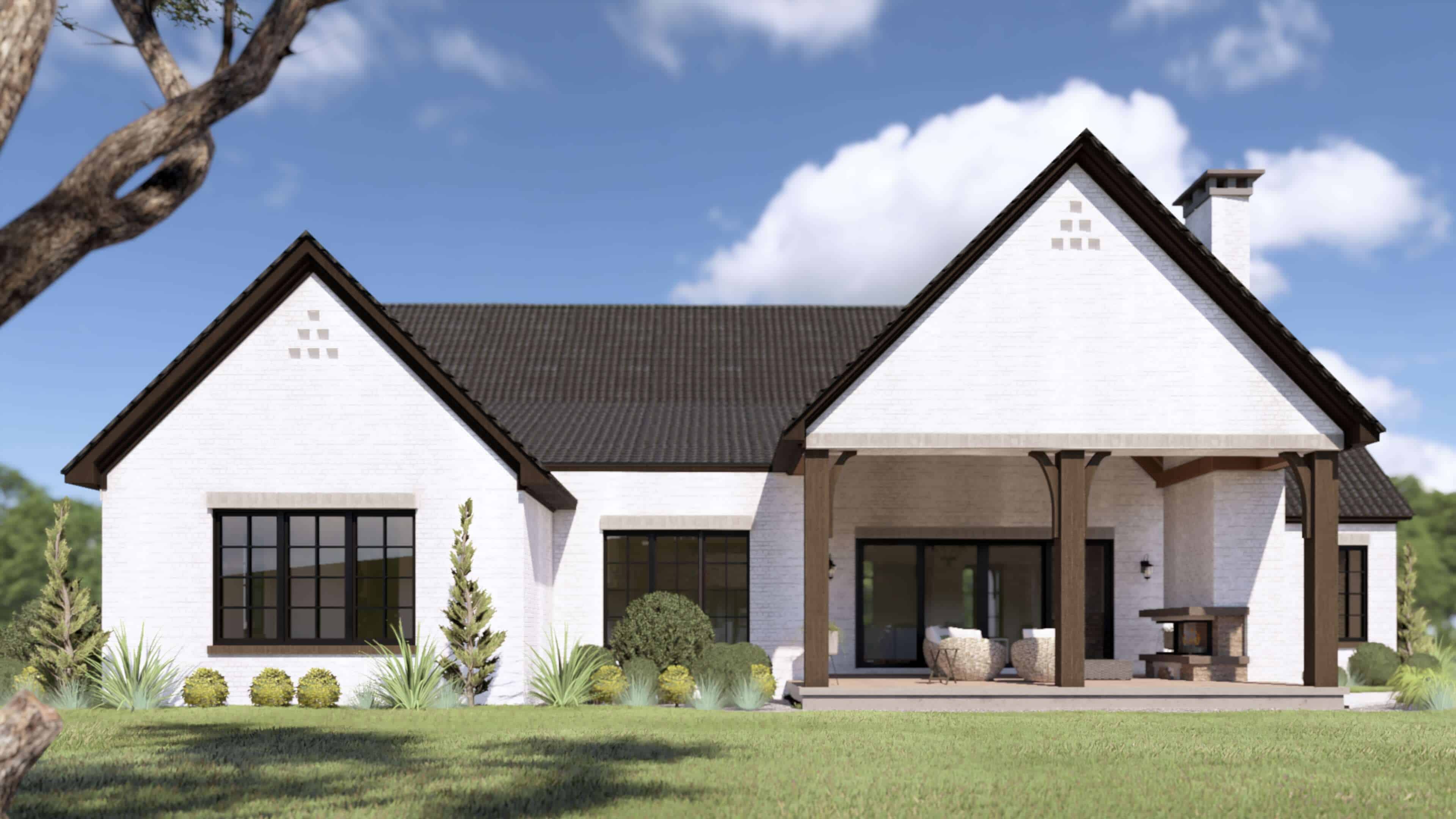 Discover elegance in this 4-bedroom, 3,755 sq. ft. European plan featuring an outdoor living area, 3 fireplaces, a great room, dining, kitchen with eating bar and pantry, mudroom, hearth room, split primary suite, and a garage with a workbench.