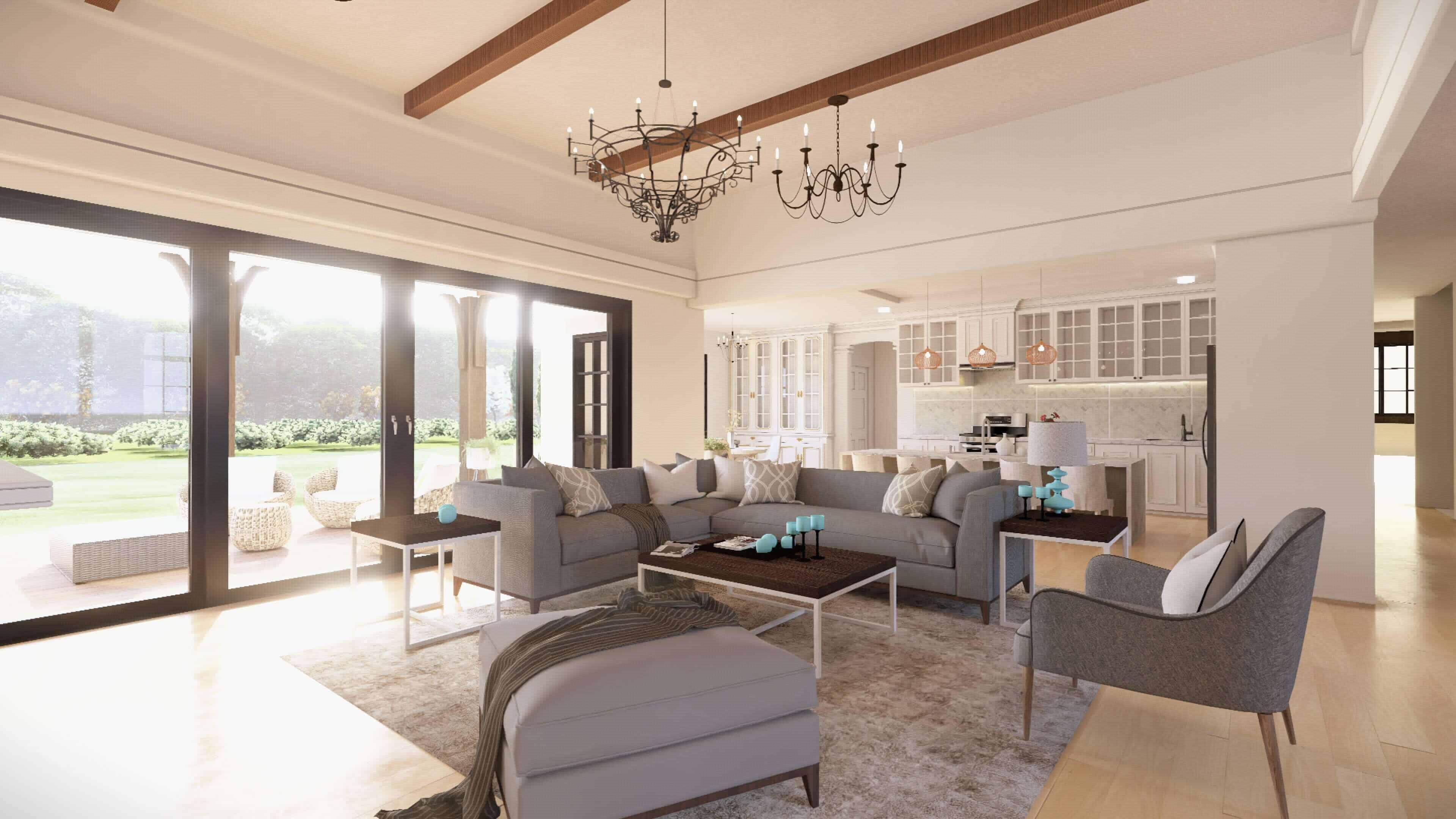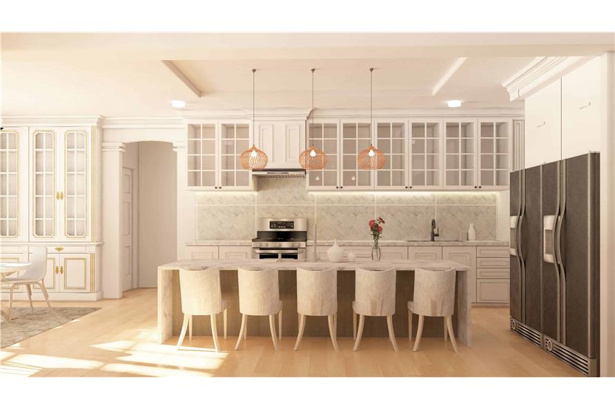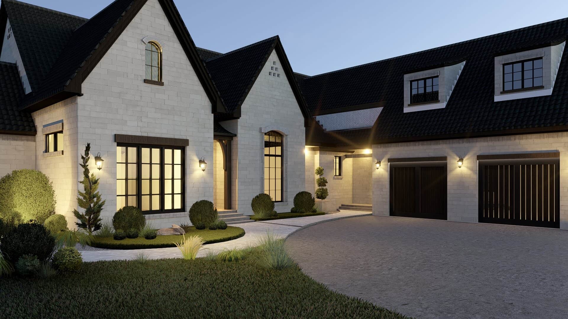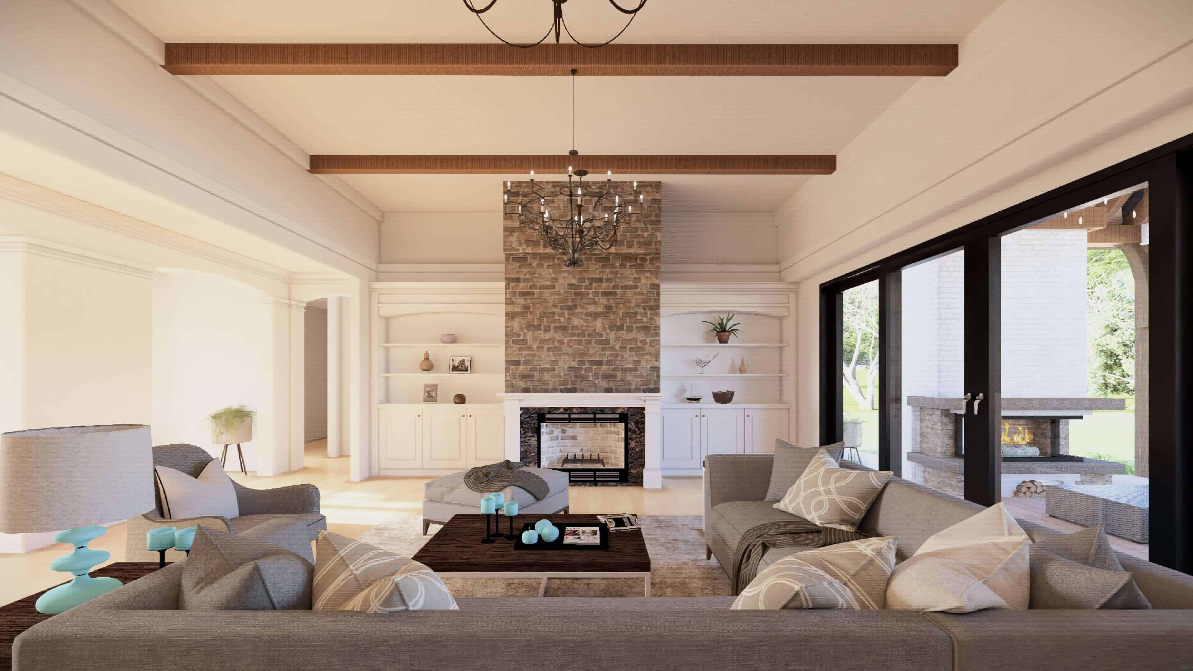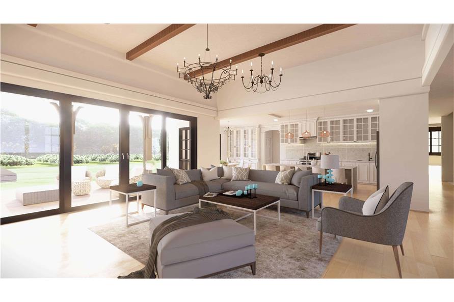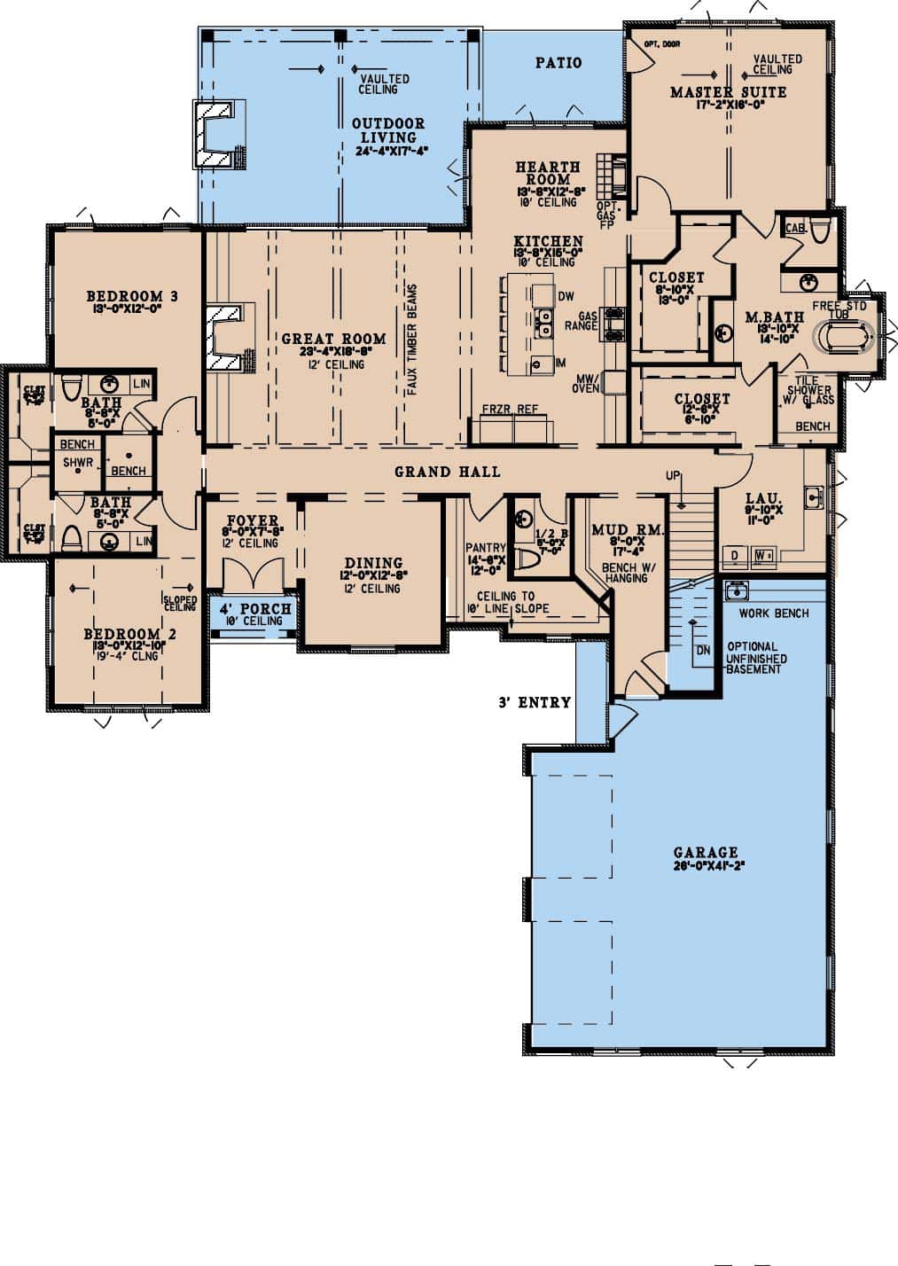 Discover elegance in this 4-bedroom, 3,755 sq. ft. European plan featuring an outdoor living area, 3 fireplaces, a great room, dining, kitchen with eating bar and pantry, mudroom, hearth room, split primary suite, and a garage with a workbench.