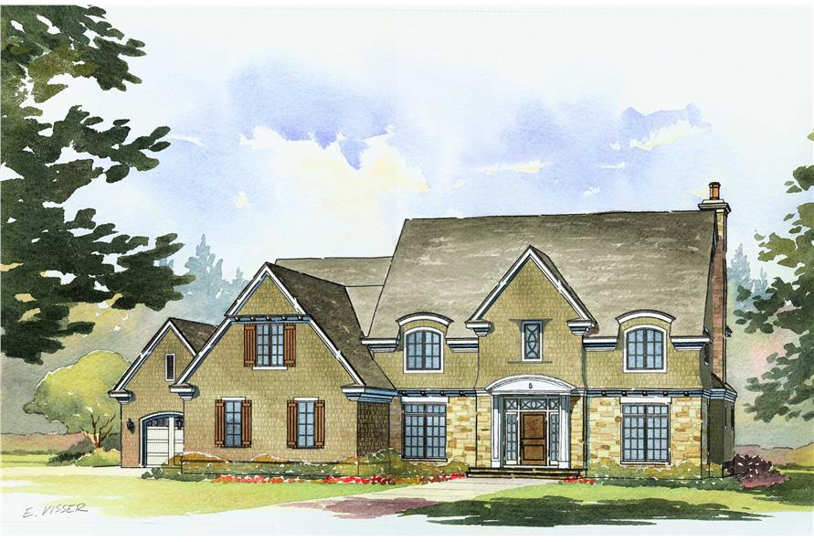 This gorgeous country luxury house plan is designed with old-world charm for todays modern family. An expansive kitchen and hearth room are joined by a formal living room, dining room and private library. The spacious, open floor plan design hides loads of amenities, including a unique home management center for online bill payment, homework, even craftwork. A split three-car garage with side family entrance and generous mudroom with built-in lockers and a full-sized walk-in closet make it easy to manage coats, boots, groceries, even sports equipment. Upper floor has...