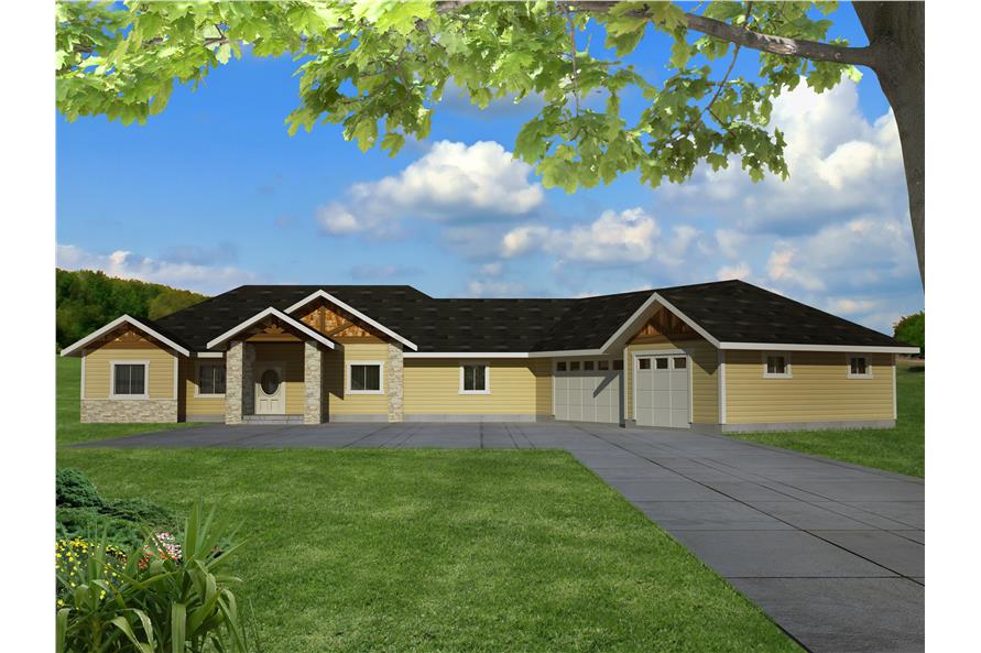 This beautiful traditional home has 3801 square feet of living space. The one-story floor plan includes 4 bedrooms and 4 bathrooms. The exterior of this home has an appealing covered front porch. Inside, this house design's floor plan includes an attractive main floor master.