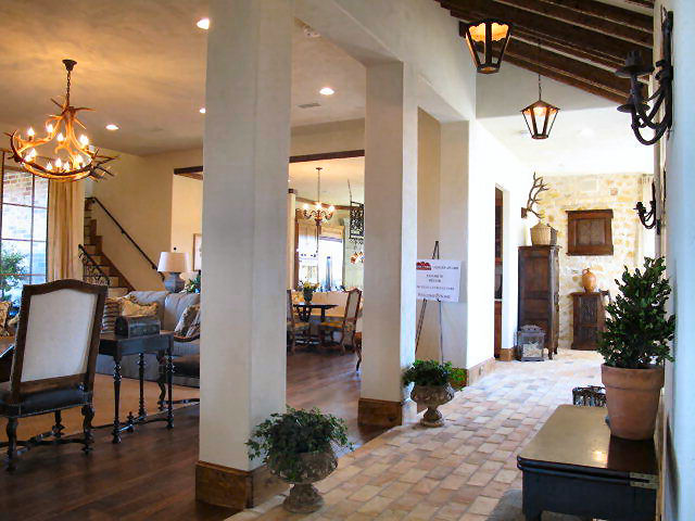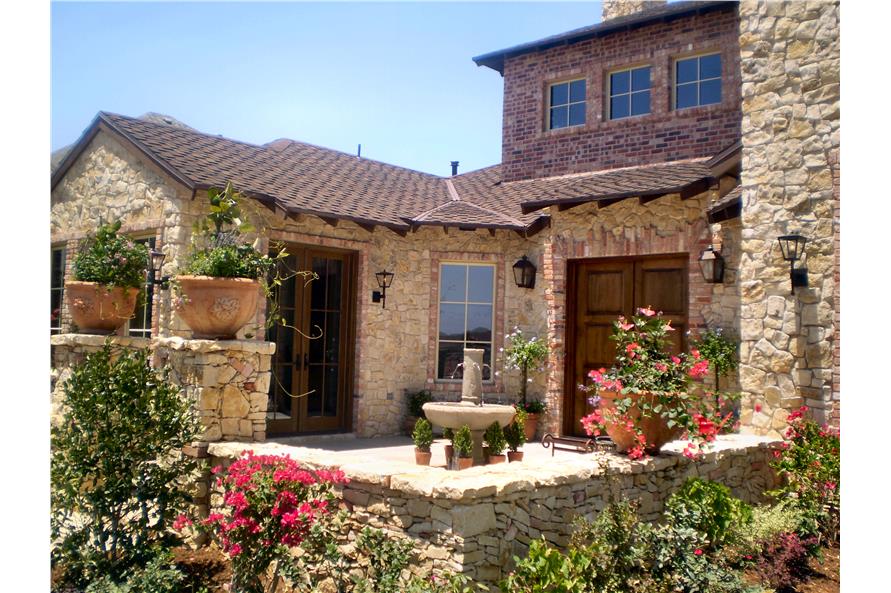 Luxury features like the courtyard entry, stone and brick move this traditional home to a place of Tuscan living (Plan #195-1135). Give family and friends a taste of Tuscany with this sizable 4-bedroom, 4.5-bath home. The front courtyard is a very nice touch, adding a fountain would dazzle guess before they each walk through the door. From the vaulted foyer past the columns, the great room and fireplace go hand in hand to create a space that is perfect for entertaining. Steps away from the outdoor lounge with a cooking area give family and friends to enjoy the home inside and out. The...