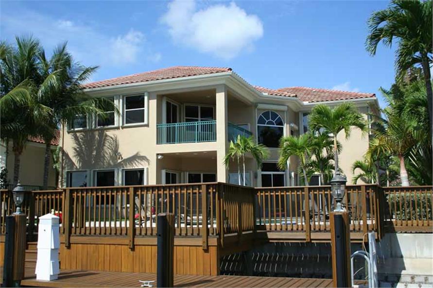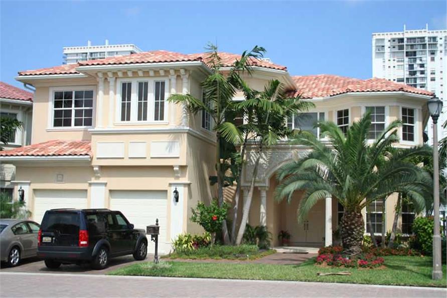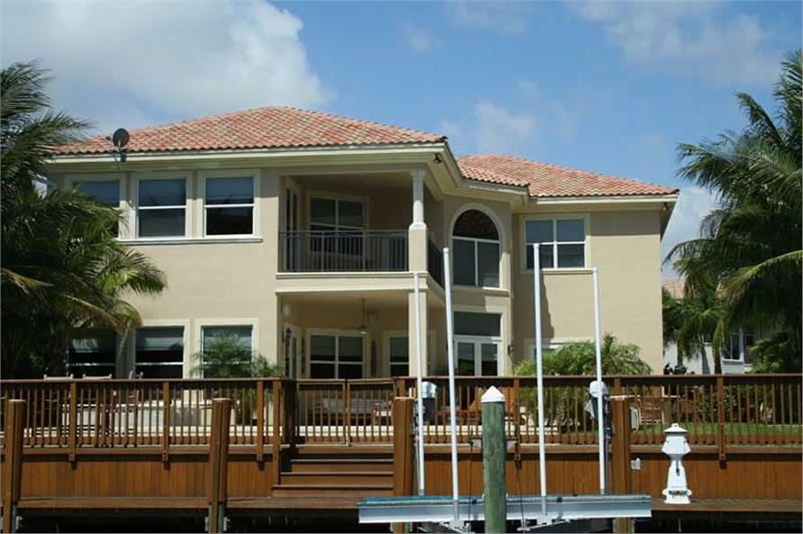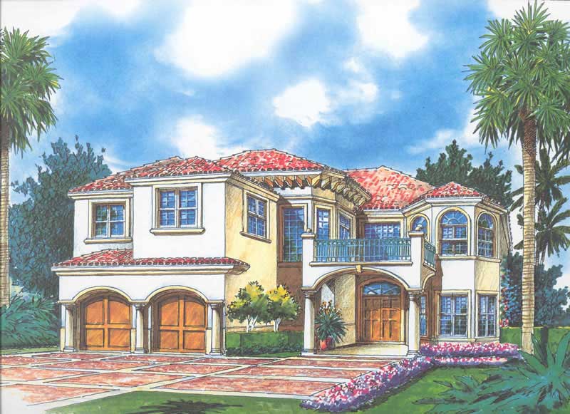 This Home Plan is a two-story Mediterranean style home plan with 4 baths, 4 bedrooms, and a two-car garage. This house plan has a covered entry and a covered terrace.