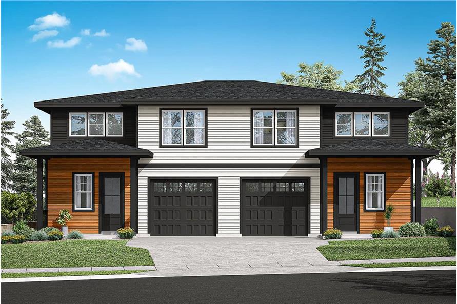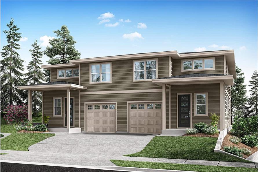 NOTE: This multi-family plan has two identical units. Each unit has 1,936 living square feet, 3 bedrooms, 2.5 bathrooms, and 1-car garage space.