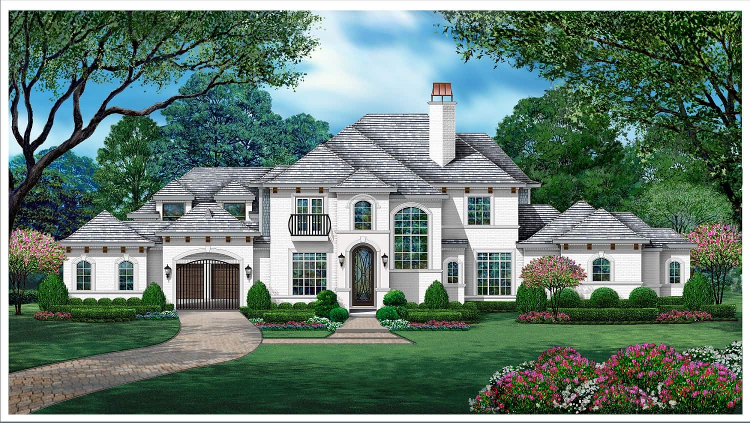 This impressive and highly luxurious French Country style house will grab your attention with its dynamic architectural design. The hip-style roof lines and picturesque arched window and door openings create a magnificent manor-like facade with great curb appeal. The endearing 1.5-story home's floor plan has 3,937 square feet of fully conditioned living space and includes wonderful features such as
