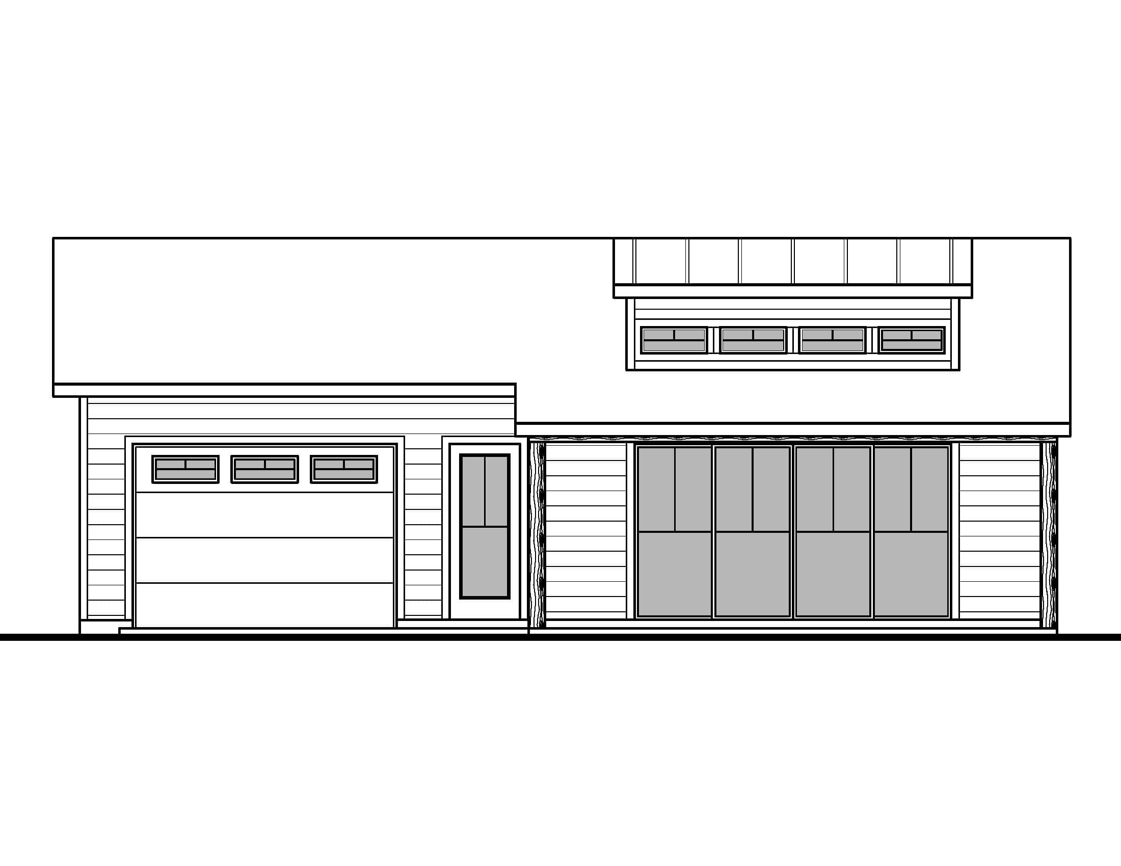 This 400 sq ft tiny, contemporary ADU plan offers modern elegance with a practical design and handicap accessibility. It features an attached one-car garage, sleek white façade, open studio living, a 4-piece kitchen, a versatile laundry/pantry, and a ¾ bath for comfort and convenience.