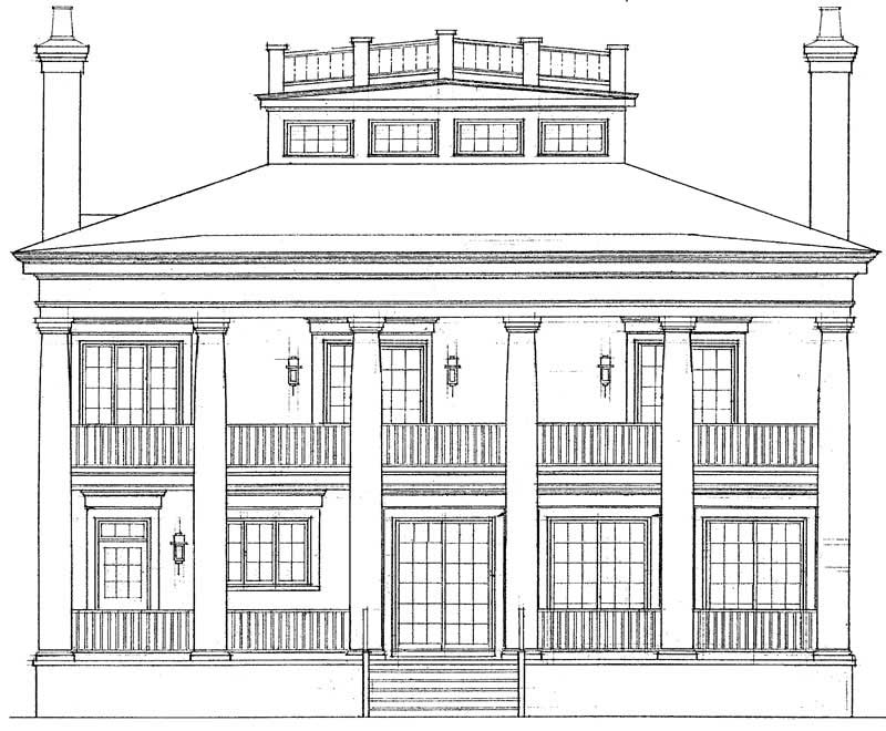 This is a colonial style home plan wtih a large family/kitchen area, fireplaces in the living and dining, and a covered porch on the front and rear side of the home.