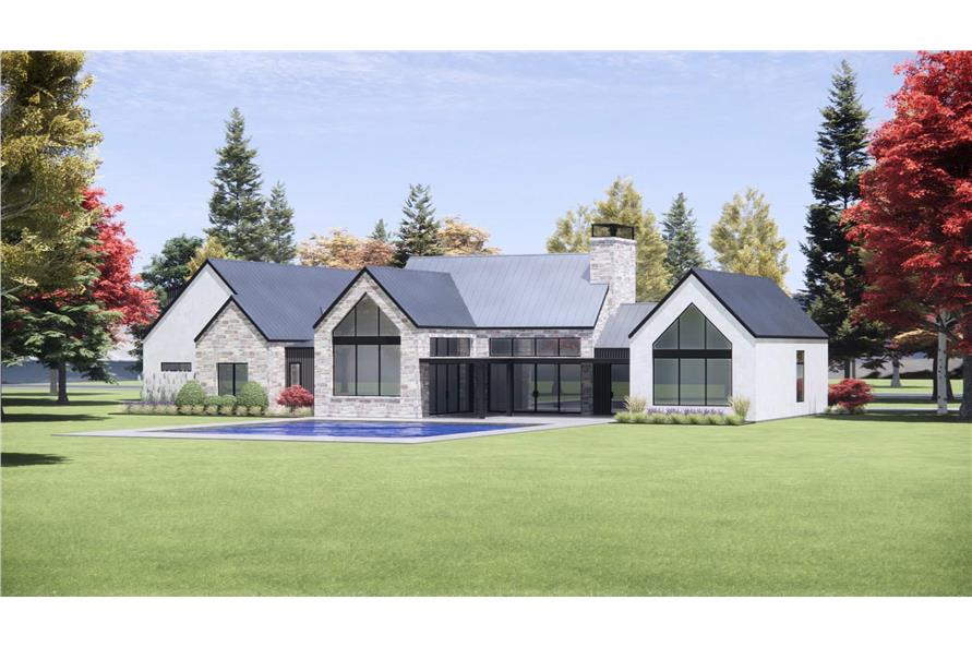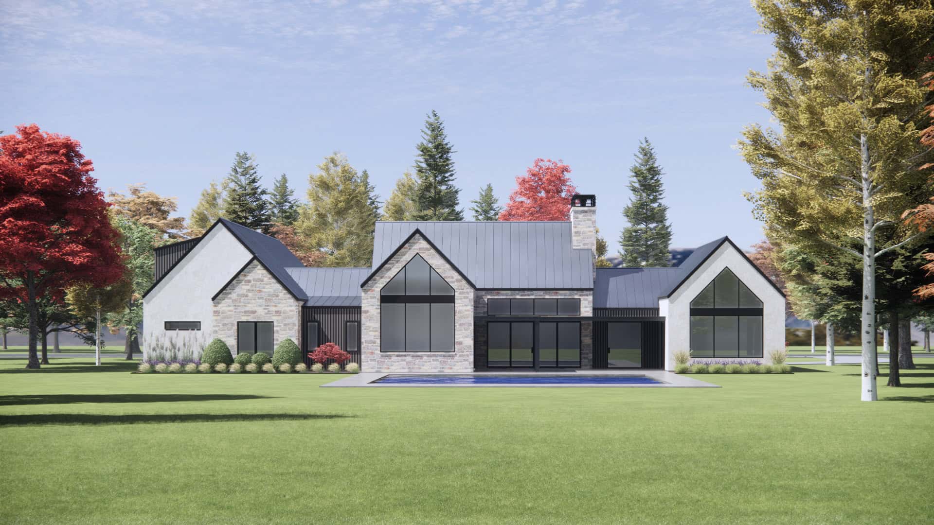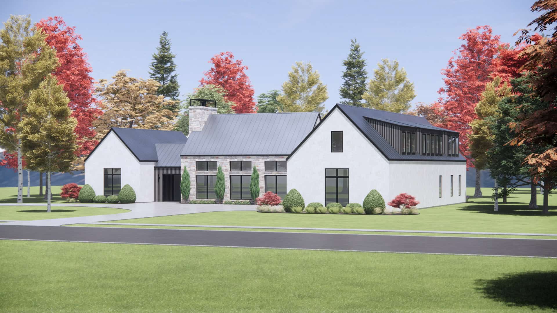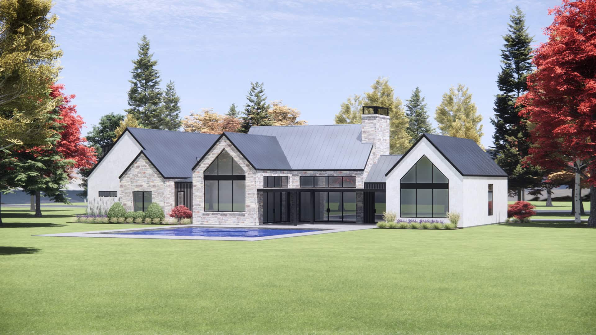 Inspired by country and farmhouse design, this luxurious contemporary home spreads across 4,081 square feet and showcases four bedrooms, 4.5 baths, and a 3-car garage. The floor plan enjoys a long list of amenities: