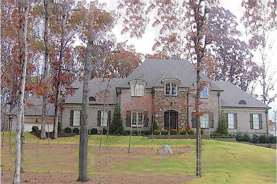 This is a symmetrical French home with a stone section in the center. The plan mixes it up with some older designs with modern amenities.