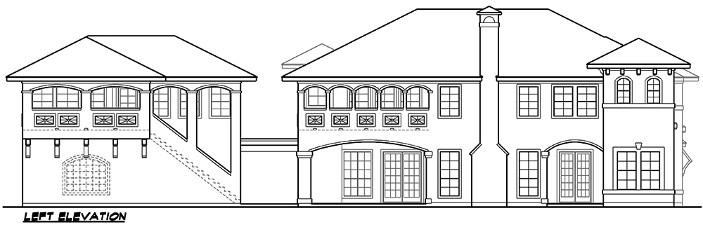 This lovely Mediterranean style home with Spanish influences (House Plan #195-1041) has 4251 square feet of living space. The 2 story floor plan includes 5 bedrooms.