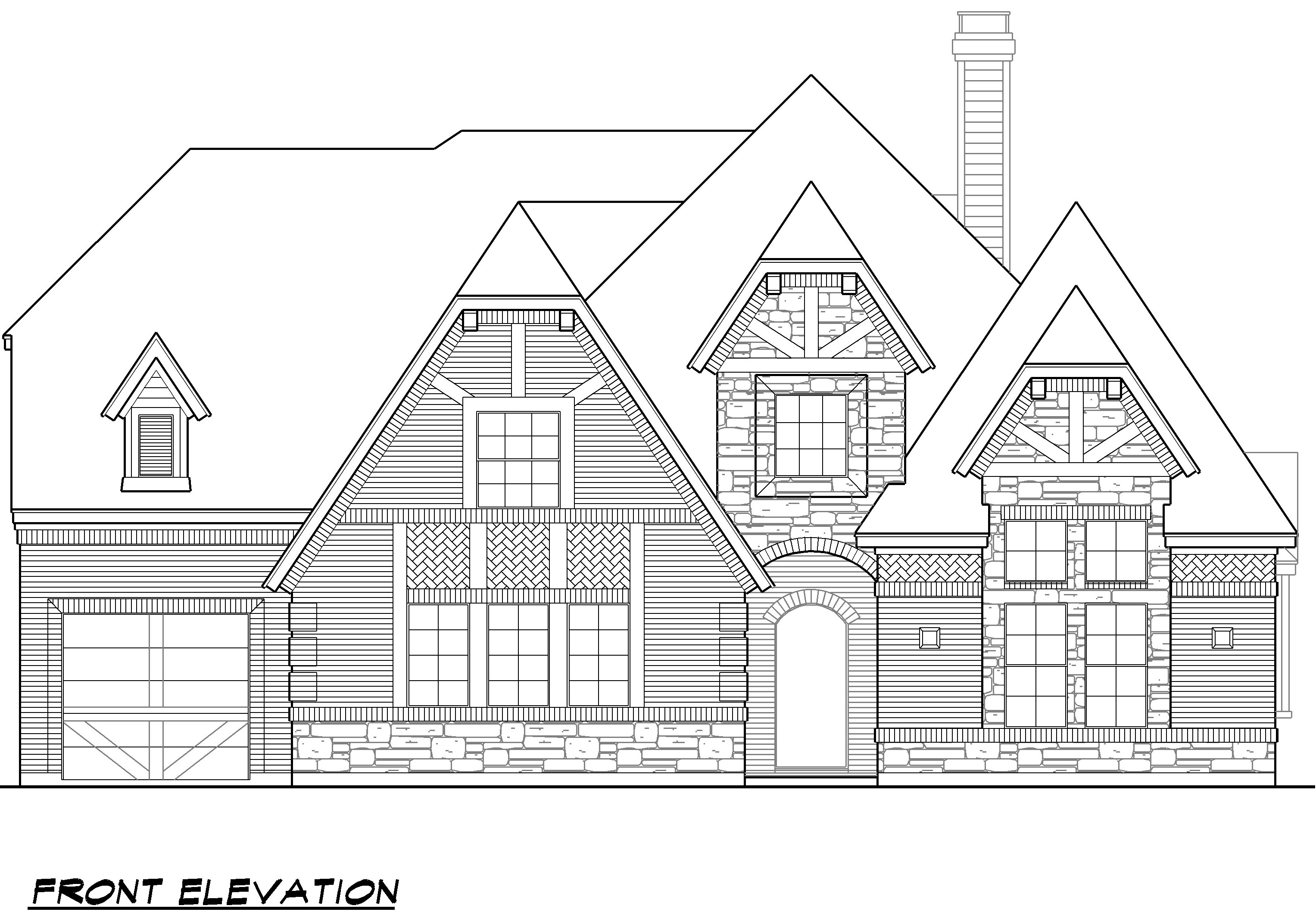 This lovely Tudor style home plan with Luxury influences (House Plan #195-1025) has 4268 square feet of living space. The 2 story floor plan includes 4 bedrooms, 3 full bathrooms, and 1 half bath.