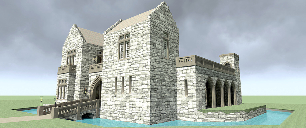 This lovely Historic style home plan with European Castle influences (House Plan #116-1111) has 4357 square feet of living space. The 2 story floor plan includes 3 bedrooms, 2 baathrooms, and 2 half baths. The exterior walls are of double 2x6 wood framing construction and are faced with stone.