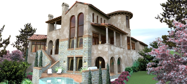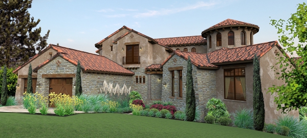 The architecture of this stunning home brings to mind the hillside villas of Tuscany or perhaps La Rioja. The stucco and stonework, arched windows and Juliet balcony, natural wood timbers and tile roof. All of these come together to create a rustic yet sophisticated style.