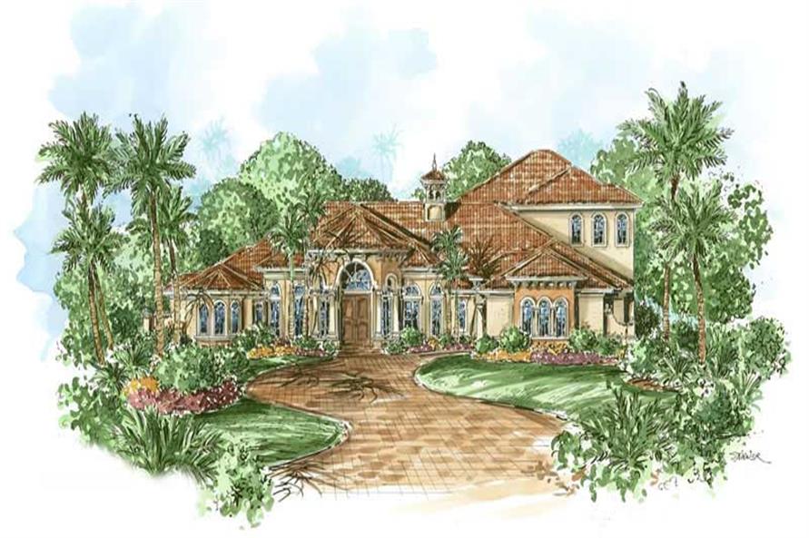 This design is a beautiful Florida two-story home with a unique Mediterranean curb appeal. This home is best appointed for properties with panoramic views from the rear yard. The entire back of this home can be opened up by large expanses of zero corner pocket sliding glass doors, protected by a large covered lanai, which spans across the entire rear of the home. The Mediterranean lanai also features a sports bar and grill. This home plan has a perfect flow for large family and friend gatherings with a large walk-in wet bar centrally located. This plan is not for sale for use in...