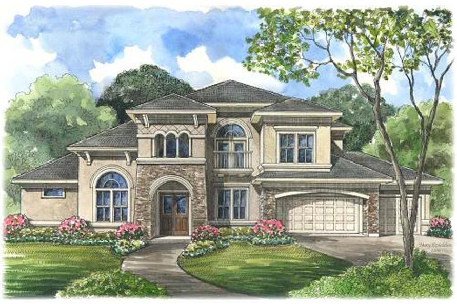 This lovely Mediterranean style home with Spanish influences (House Plan #134-1075) has 4486 square feet of living space. The 2 story floor plan includes 5 bedrooms.