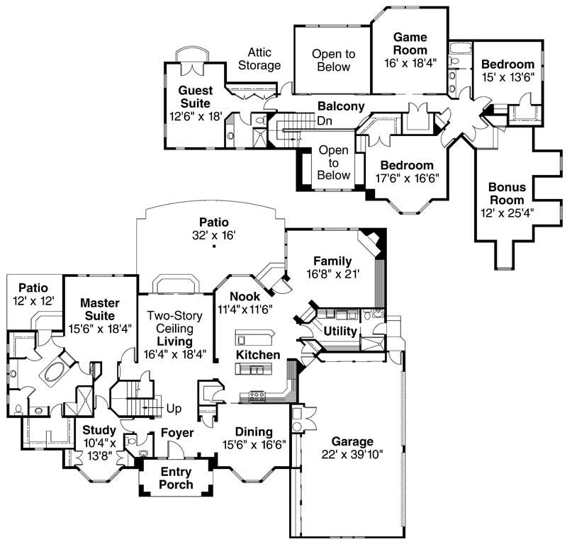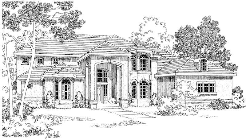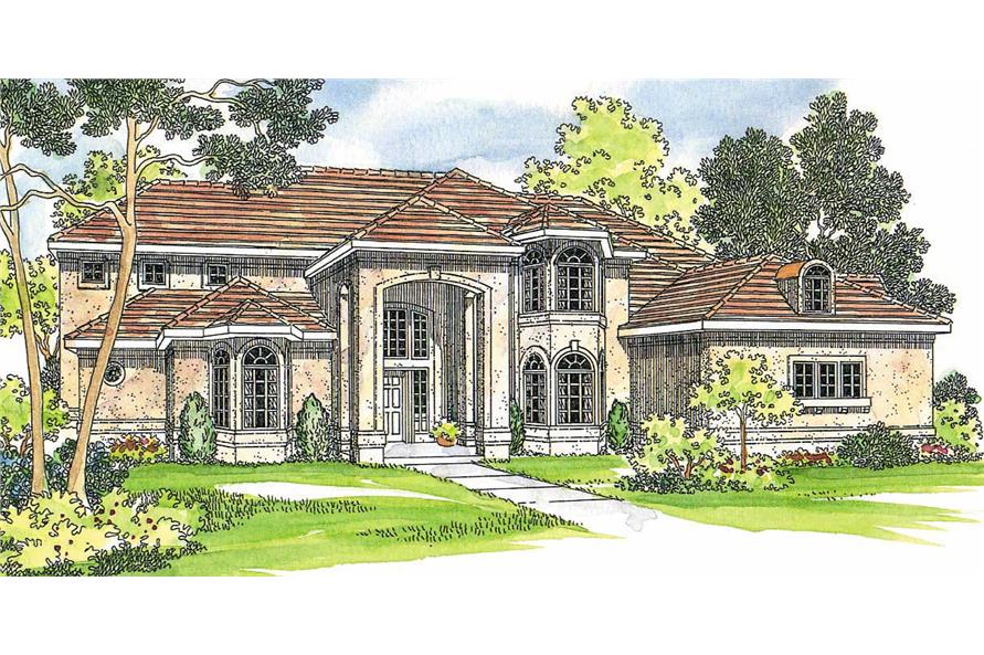 The #108-1220 home plans are two story, Mediterranean style house plans with 4567 total living square feet. This Mediterranean home plan features a dramatic entry portico that opens into a breath-taking two-story foyer. There are four huge gathering spaces on the main floor and a big game room upstairs. The two-sided fireplace can be enjoyed from the sleeping area and luxury bath.
