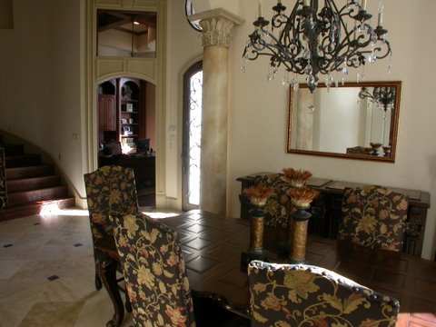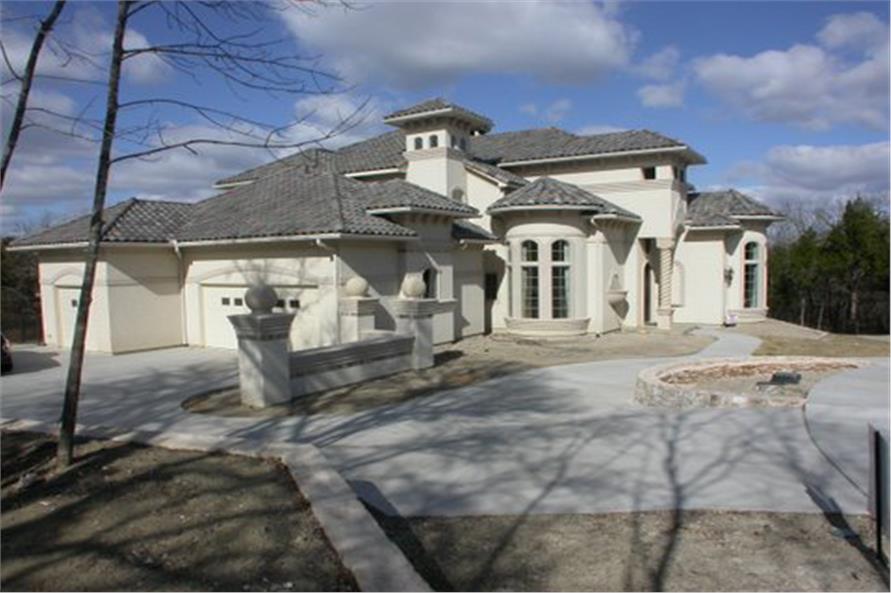 This stunning Mediterranean style home with Spanish influences (House Plan #195-1070) has 4623 square feet of living space. The 2-story floor plan includes 4 bedrooms.