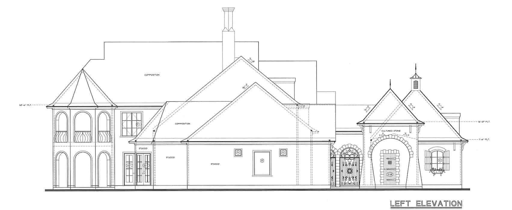 This extraordinary French style home plan with Country characteristics (Plan #120-2539) has 4629 square feet of living space. The 1.5 story floor plan includes 4 bedrooms.