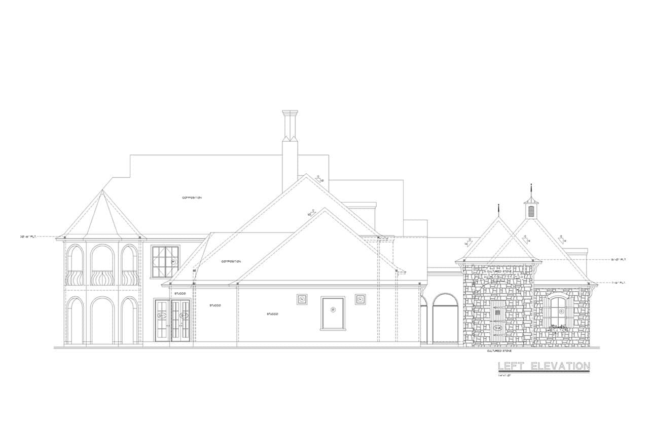 This 4,629 square-foot French style house plan is designed with enduring beauty, including 4 bedrooms, 4.5 baths, and a 4-car garage. Traditional elements and graceful style define its character:
