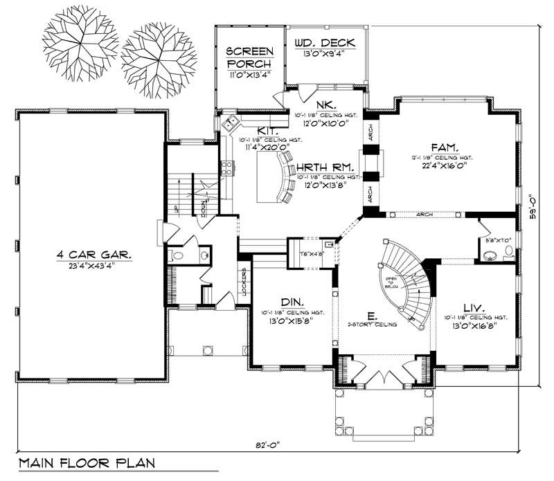 This outstanding estate home plan features a traditional blend of graceful columns, shuttered windows and stone siding. Enter under a beautiful pediment to the grand foyer where you’ll love the gracefully curved staircase. The spacious great room features arches, columns, and a see-through fireplace make it a special retreat. The kitchen’s main attraction is the large island with seating for four that overlooks the fireplace. The formal dining and living rooms are at the front of the home, taking in plenty of natural light. Four upstairs bedroom suites include a master suite...