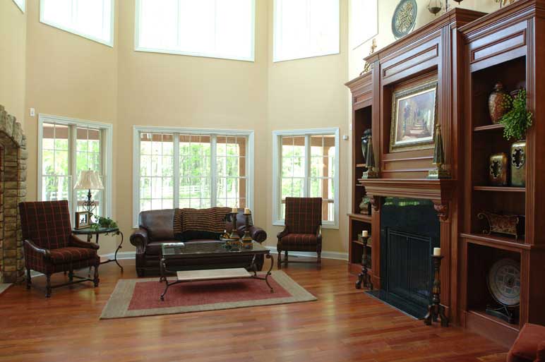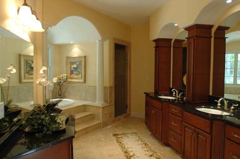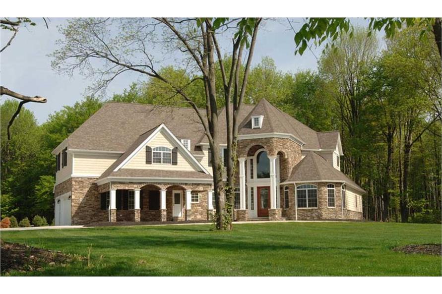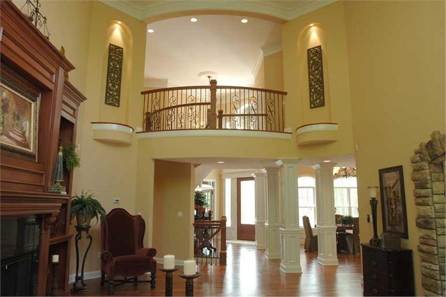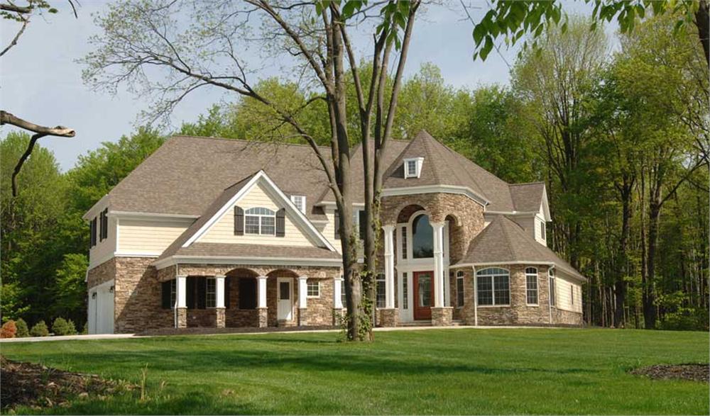 This gorgeous contemporary home with European influences (House Plan #106-1138) has 4765 square feet of living space. The two story floor plan includes 5 bedrooms. The plan is unique and timeless. The grand spiral staircase in the middle brings all the rooms together nicely. The Master bedroom is spacious with a personal fireplace, as well as the library and family room. The kitchen has a great eating bar. Each room upstairs has easy access to a bathroom, and there is a large bonus room upstairs as well.