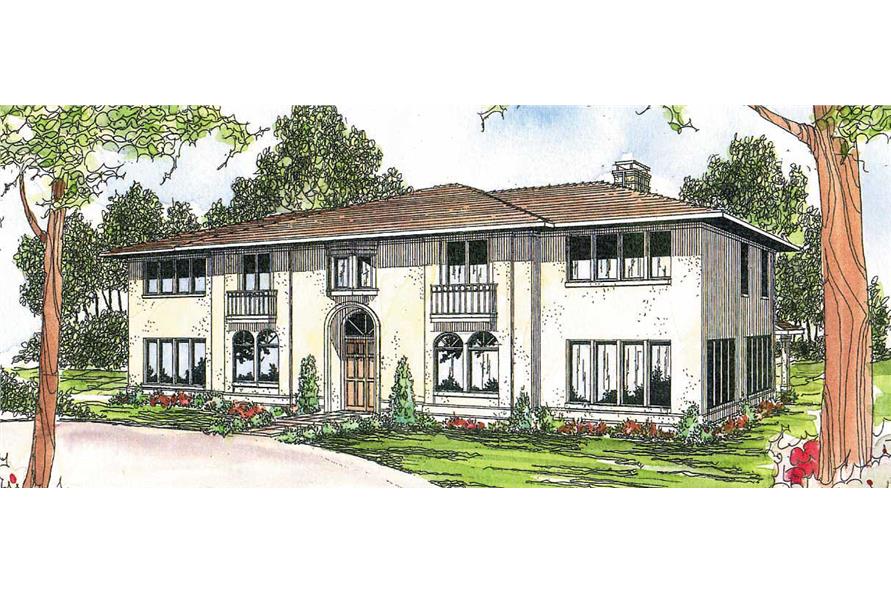 The #108-1178 house plan is a two story, Mediterranean style home plan with 4765 total living square feet. This Mediterranean home plan has plenty of space to spread out. The master & guest suites, playroom, den and three bathrooms are all on the upper level of this Mediterranean style home. The two-story living room has double doors that access the huge family room.