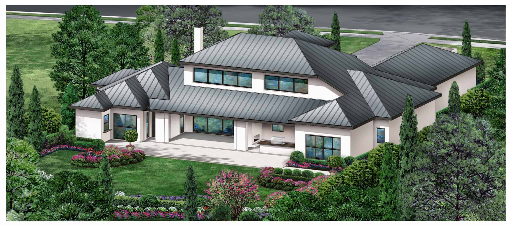 This luxurious contemporary house plan offers 4 bedrooms, 4.1 baths, over 4,700 square feet of living space and these fantastic amenities:
