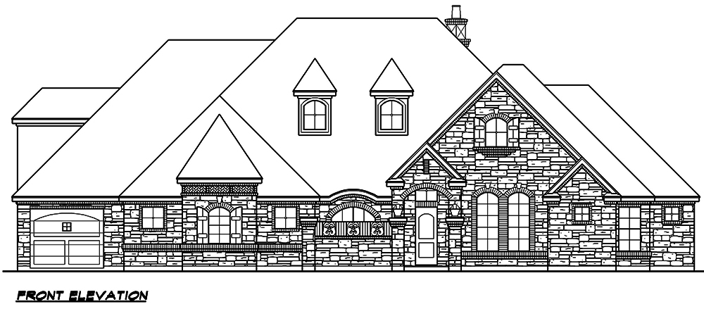 This lovely Tudor style home with European influences (House Plan #195-1105) has 4775 square feet of living space. The 2 story floor plan includes 5 bedrooms.