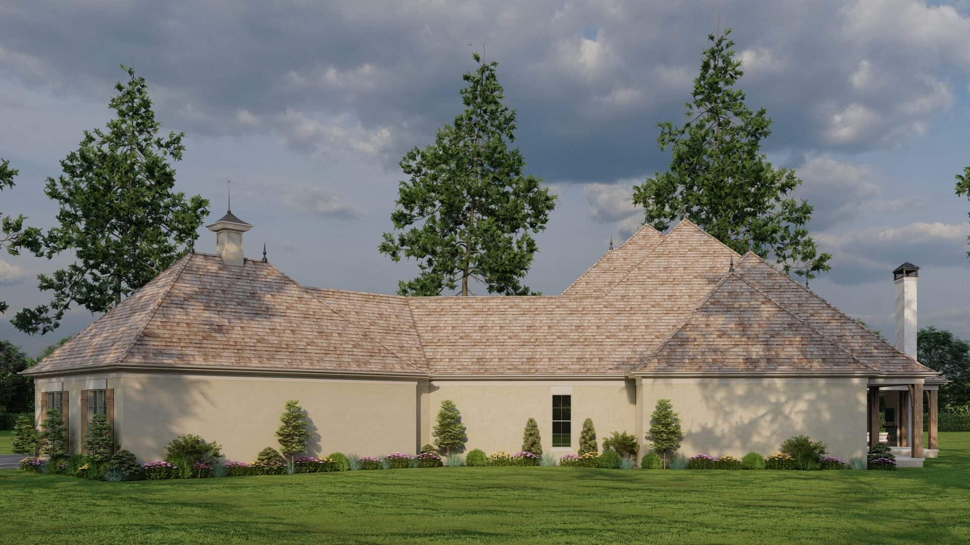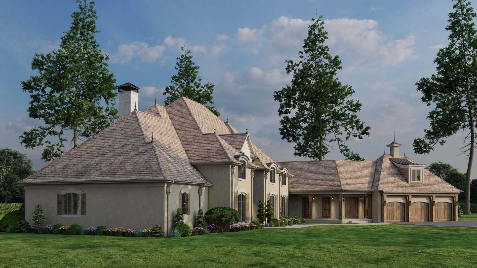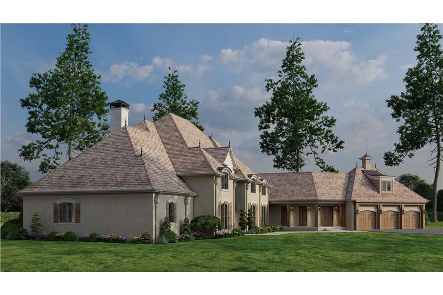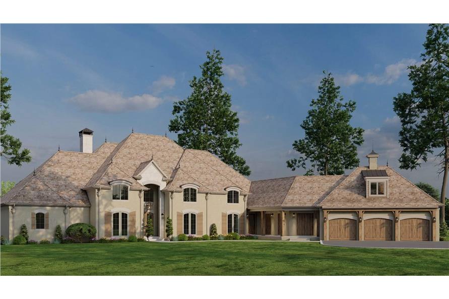 With its timeless charm, this European style house plan stretches across 4,808 square feet and features 4 bedrooms, 3.5 baths, and a 3-car garage. Additionally, it provides a delightful combination of elements that reflect elegance in every detail: