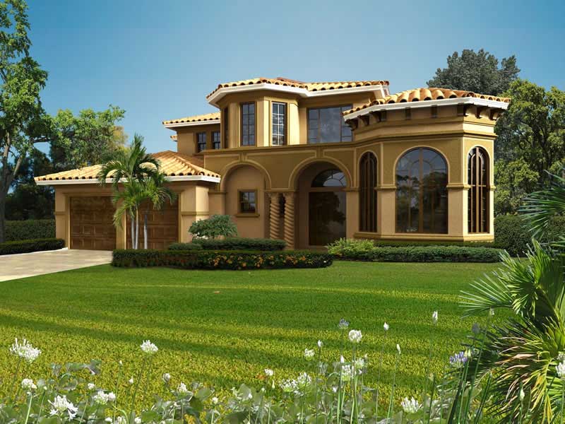 This classic Mediterranean plan has a huge Kitchen and a spectacular Living Room with raised ceilings. These high ceilings and two volume spaces make the design feel larger than life. The exclusive master Suite with large walk-in closets and luxurious master Bath is wonderful. You'll love this design if you're looking for a home with a spacious feel while also providing more private areas.