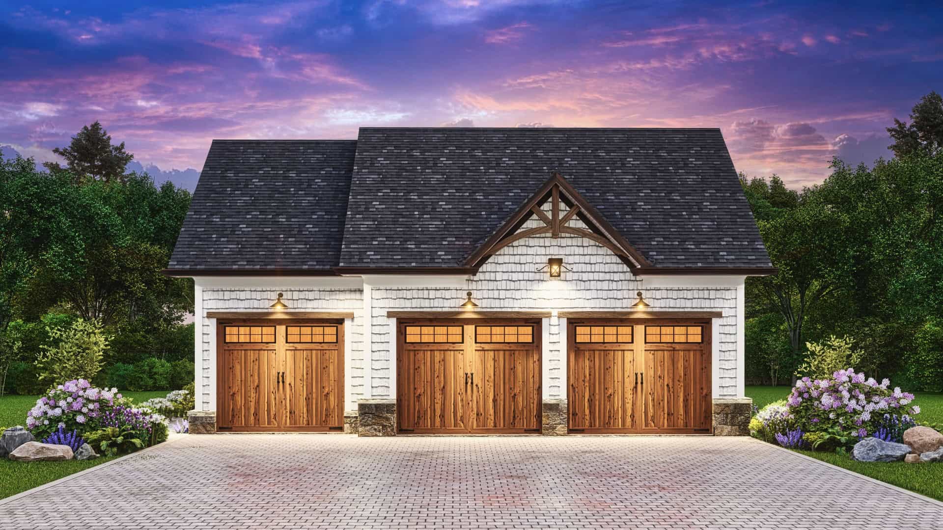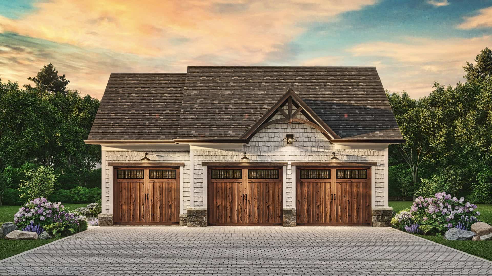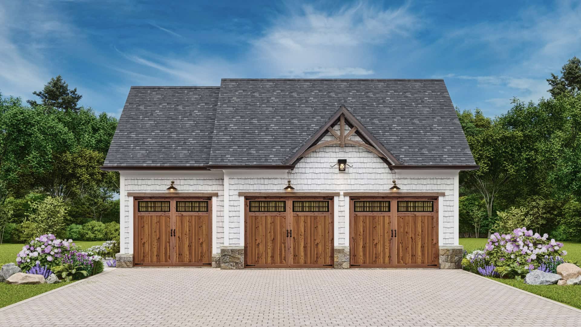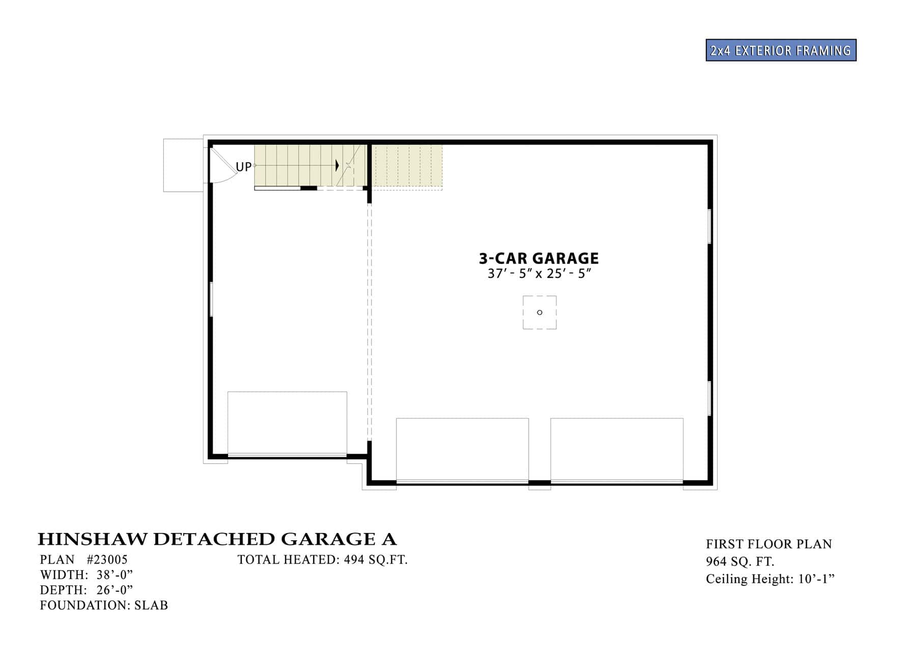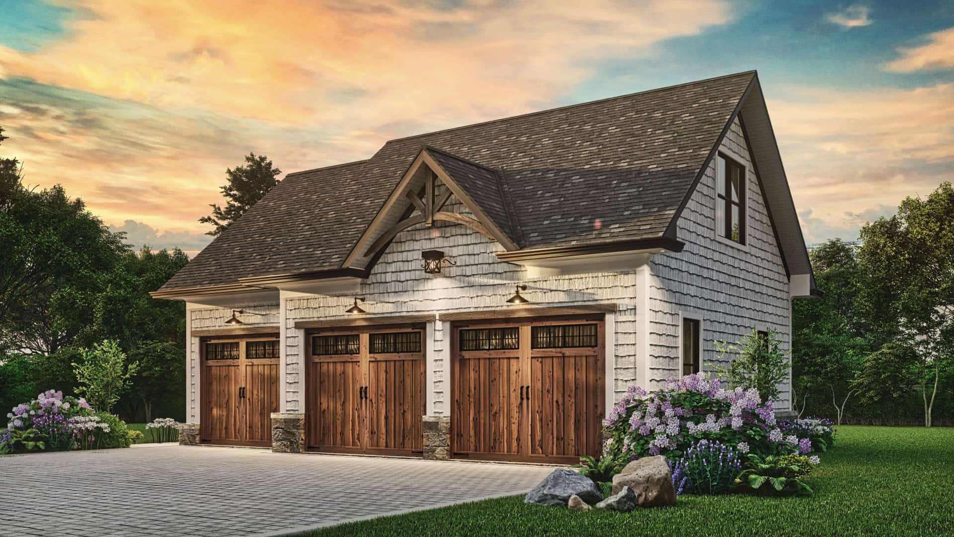 Designed with charming Cabin style details, this 964-square-foot garage plan accommodates two vehicles and provides a versatile layout that can include a workshop, storage space, or other functional zones. Upstairs, a 494-square-foot fully conditioned living area includes a bedroom that can double as a social or entertainment room, along with a full bathroom for added convenience.