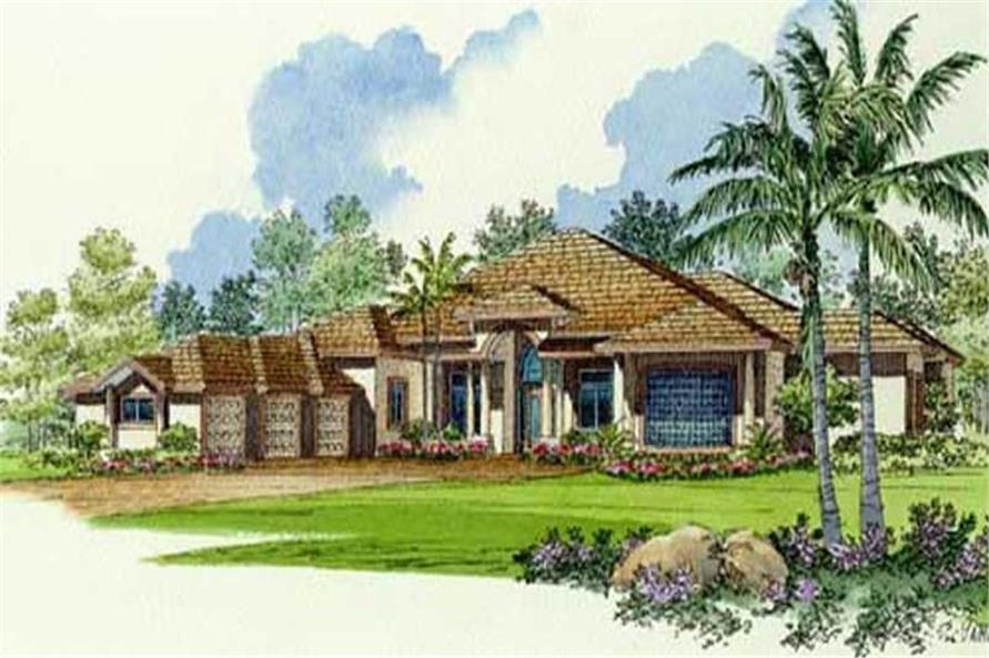 House Plan Features: Concrete block exterior construction, Covered Entry with round columns Foyer open to Living Room French doors to Study Master Suite with French doors, Sitting Room with Patio access, and Exercise Room Master Bath with Dressing area, two walk-in closets, whirlpool tub, split vanities and walk-in shower Kitchen with island range and ample cabinets Family Room open to Cafe with Rear Covered Patio access All secondary bedrooms with private bath access