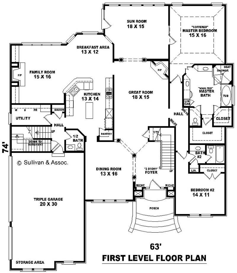 This alluring French style house design with luxury design influences has 4979 square feet of living space. The two story floor plan includes 4 bedrooms.