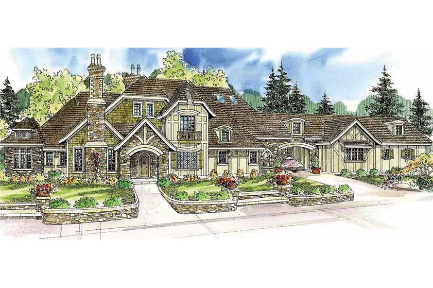 Chateau Home Plans - This chateau home plan has a fascinating façade, luxurious two-story spread designed for living large, indoors and out. Two-sided fireplaces in living room and nook can also be enjoyed from patio and game room. A porte-cochere links the interior to a patio and a garage complex that can shelter six cars.