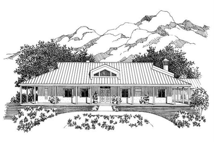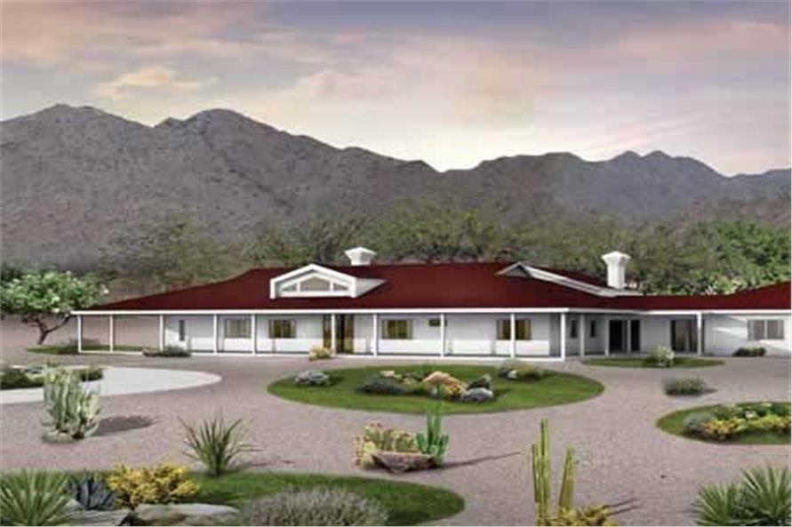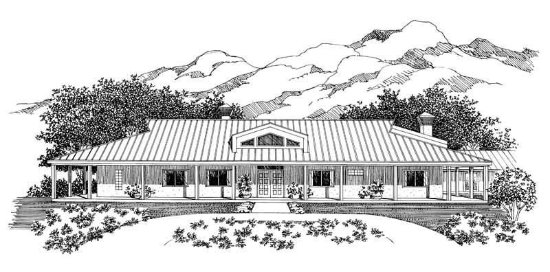 Luxury Ranch home plan, with wrap around covered porch. The home includes features such as room in the garage for a workshop, a recreation room, guest room, den, and beautifully done master bedroom.